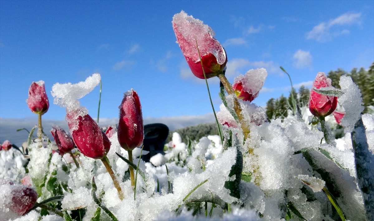 Çiçekler ve bazı meyve ağaçlarının da beyaza büründüğü ilçede, Cıbıltepe Kayak Merkezi`nde kar kalınlığı 10 santimetreye ulaştı.