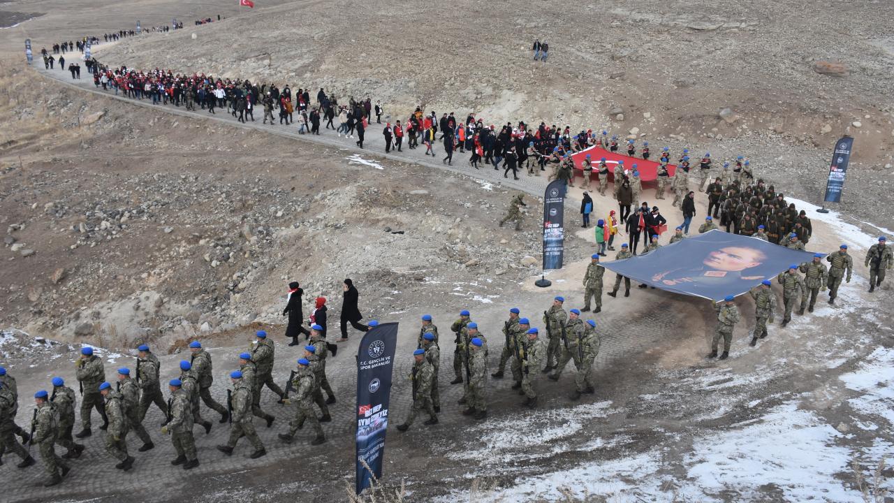 Kars'ın Sarıkamış ilçesinde, Sarıkamış Harekatı'nın 108. yılı anma etkinlikleri çerçevesinde düzenlenen yürüyüş sona erdi.