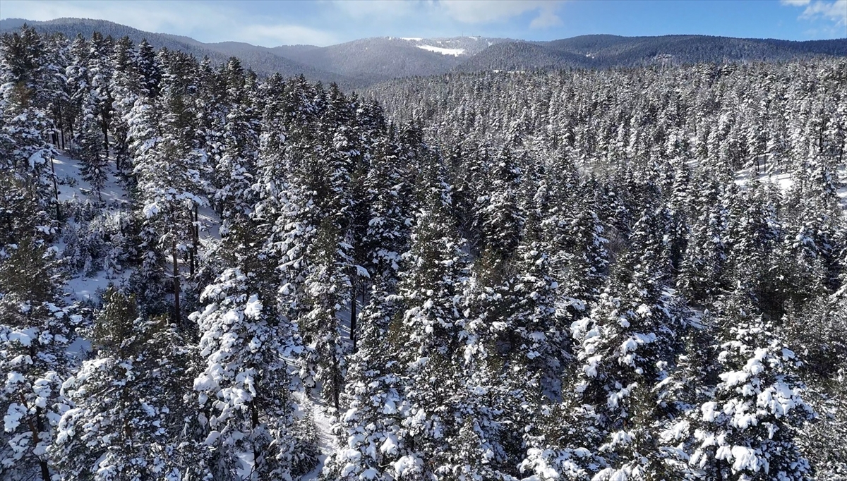 Bozayı, vaşak, kurt ve tilki başta olmak üzere birçok yaban hayvanına doğal yaşam alanı sunan sarıçam ormanları da karlı manzarasıyla güzel görüntüler oluşturdu.