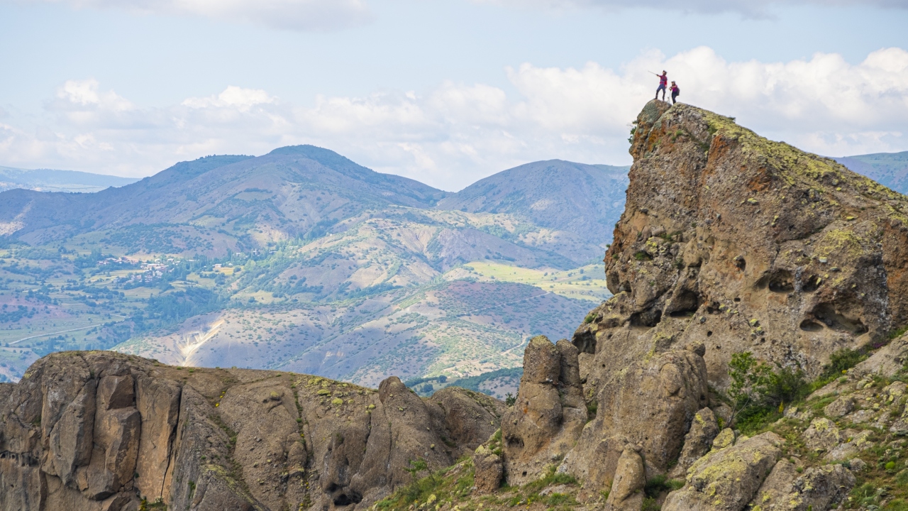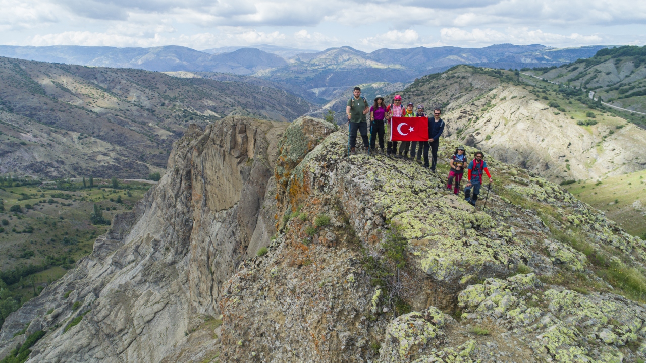 Yaklaşık 8 kilometrelik yürüyüşün ardından kanyonun zirvesine çıkan grup Türk bayrağı açtı.