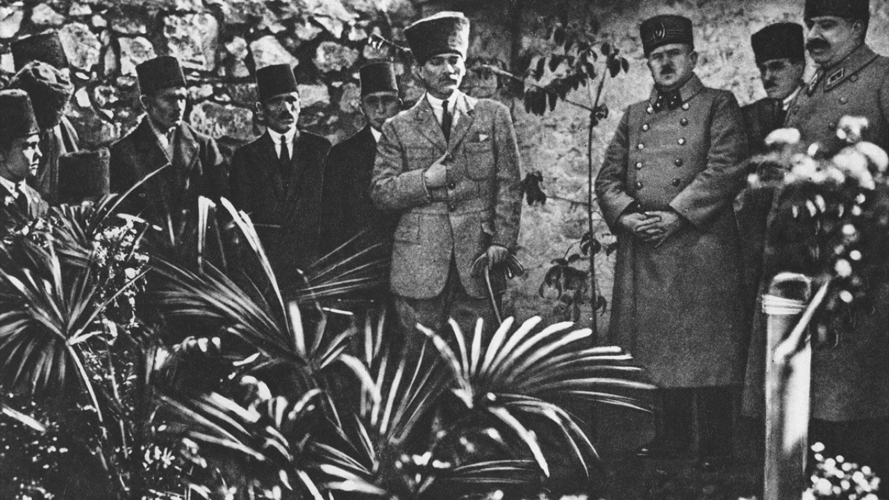 27 Ocak 1923`de Mustafa Kemal Atatürk (ortada), annesi Zübeyde Hanım`ın mezarını ziyaret etti. Ziyarette Fevzi Çakmak (sağda) ve Kazım Karabekir Paşa (sağ 3) da bulundu. (Arşiv)