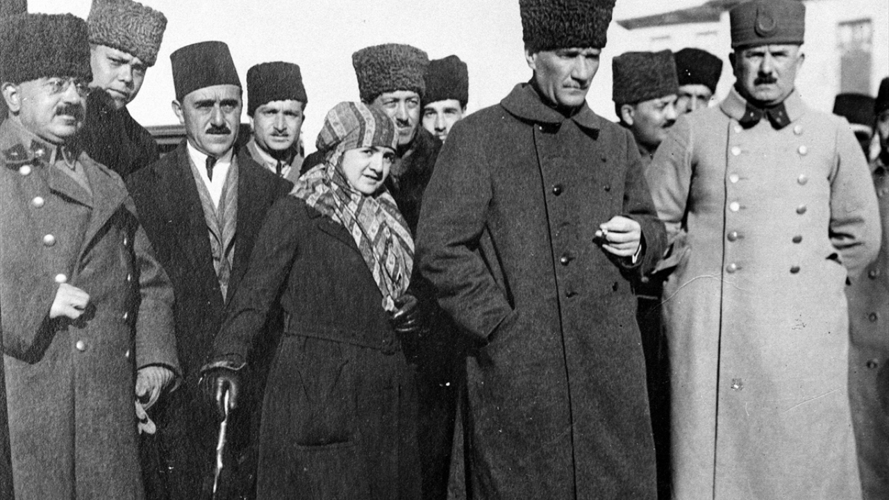 19 Şubat 1923`de Başkomutan Mustafa Kemal (sağ 2), eşi Latife Hanım (sağ 3) ve General Kazım Karabekir (sağda) ile ege gezisinde. (Arşiv)