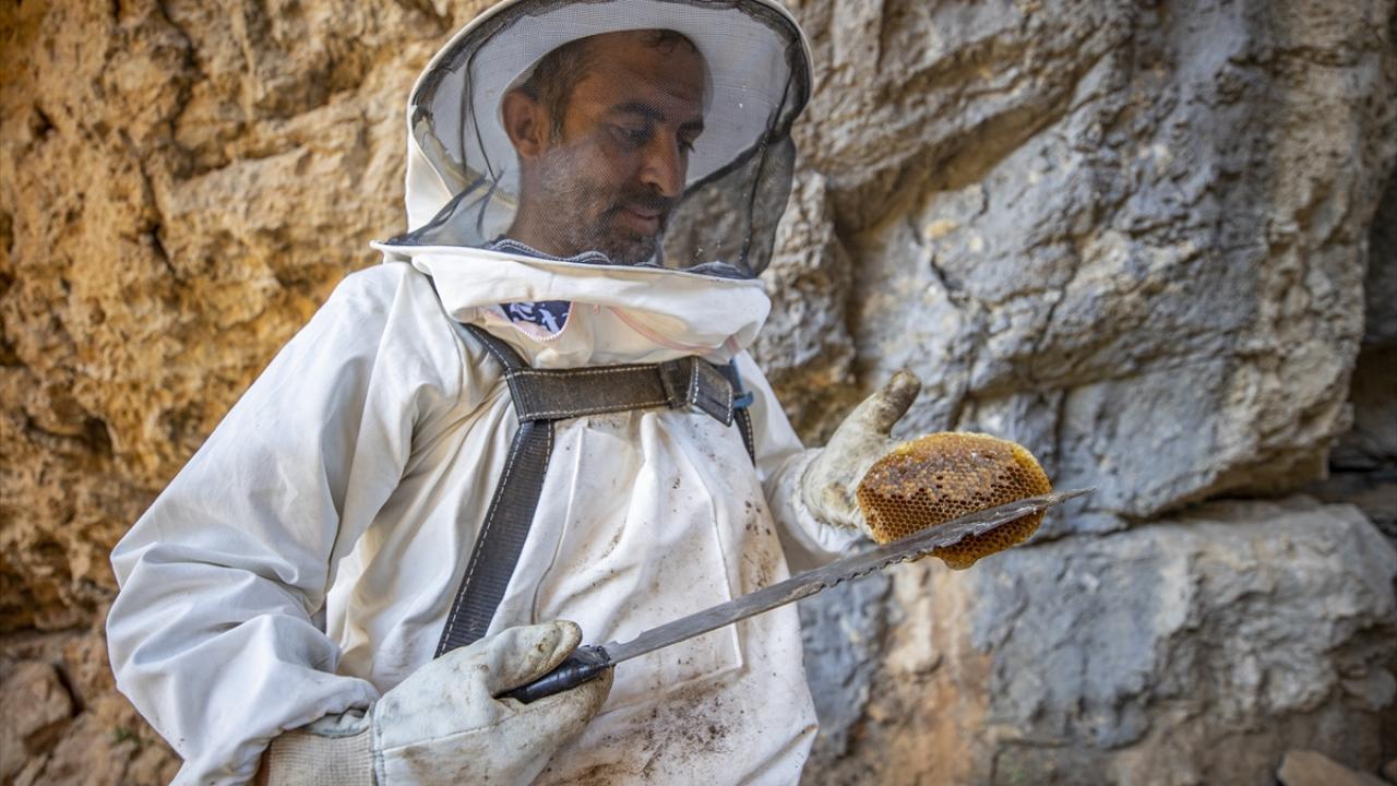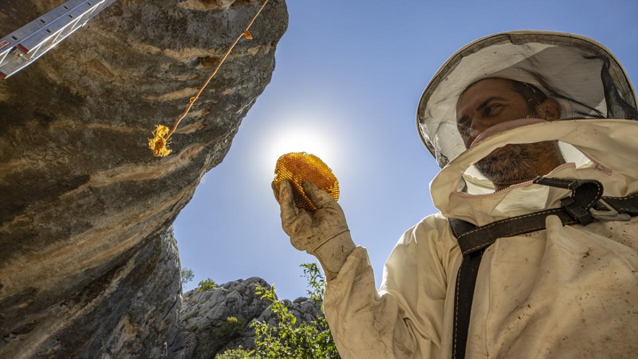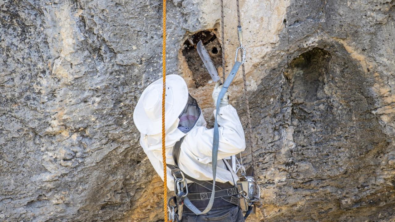 "Gezdiğimiz yerde arıları görünce biliyoruz ki orada koloni var. Arıya bal bırakıyoruz ve tütsülüyoruz. Sonra balı alan arıyı takip ediyoruz. Geldiği bölgeyi kontrol ediyoruz. Petekler ağaç kovuğunda, kayalıklarda oluyor." diyen Can, gerekli güvenlik tedbirlerini aldıktan sonra kayalıklara tırmandıklarını kaydetti.