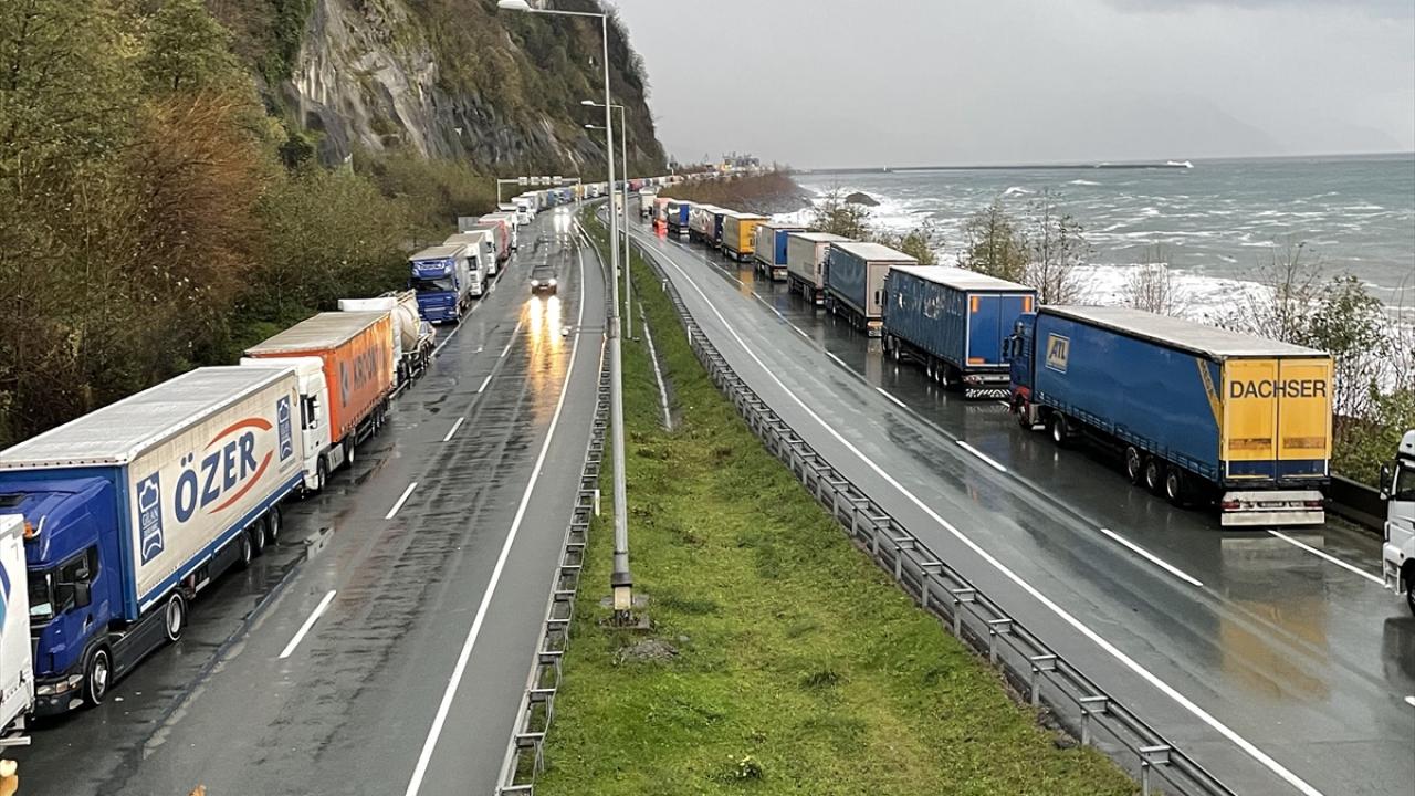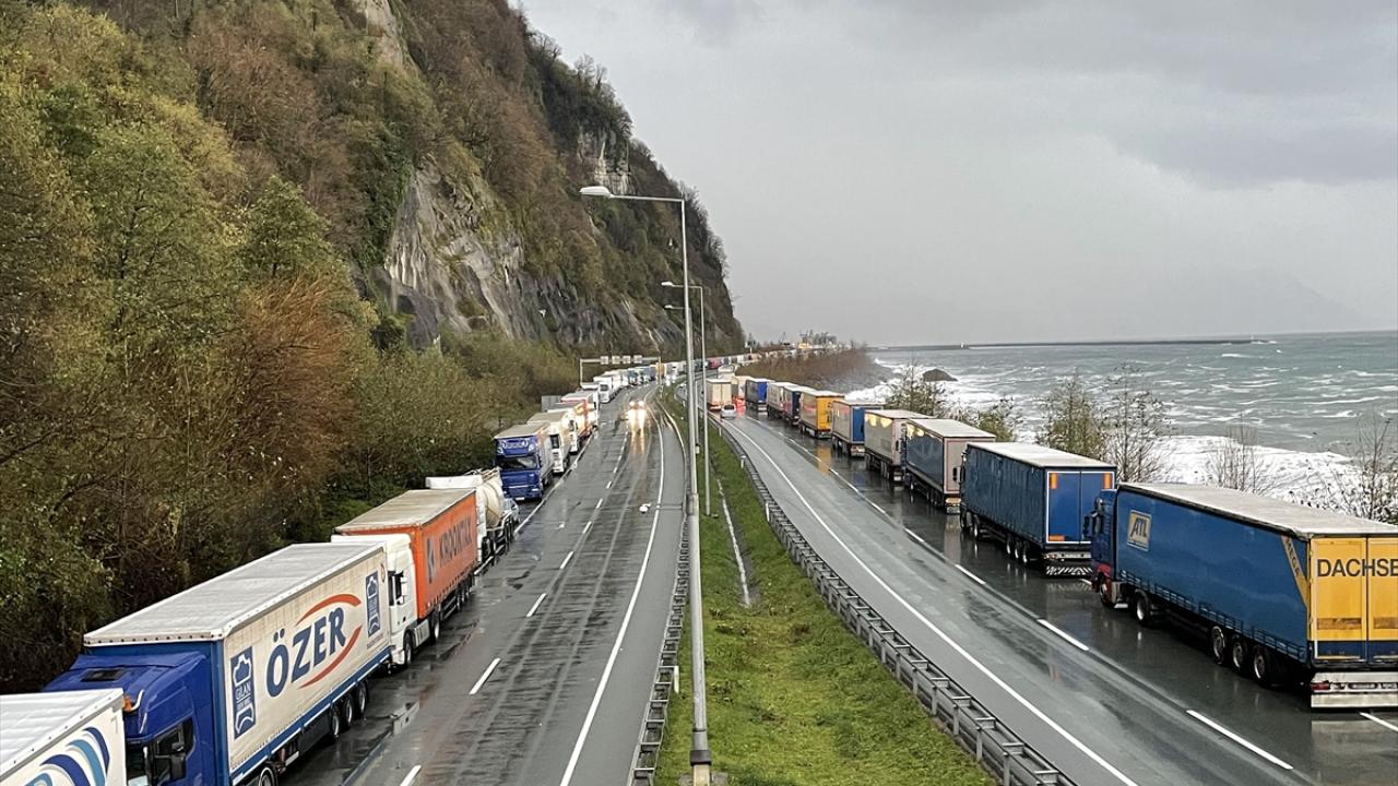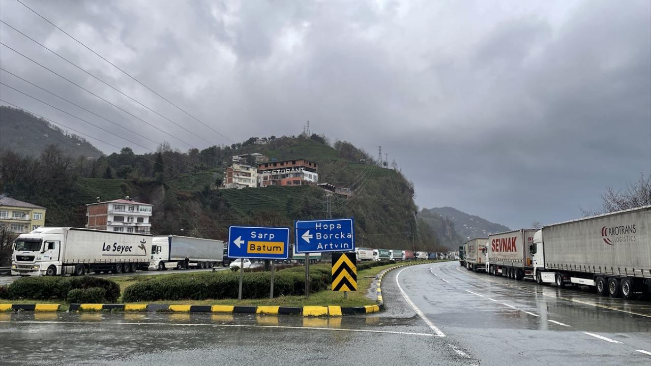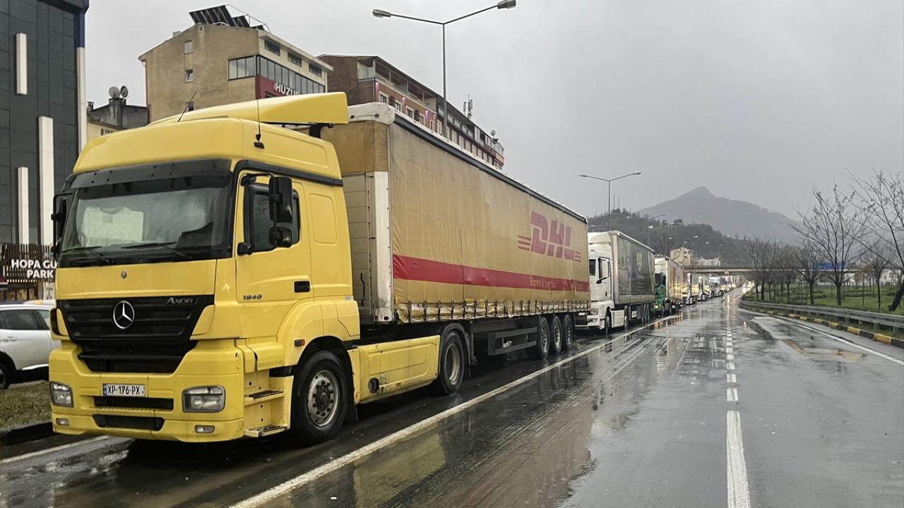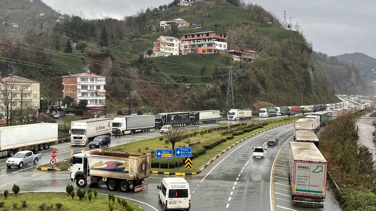 Sarp Sınır Kapısı`ndan başlayarak Karadeniz Sahil Yolu`nun Kemalpaşa, Hopa ve Arhavi ilçe güzergahındaki belli bölümlerde 12 kilometrelik tır kuyruğu oluştu.