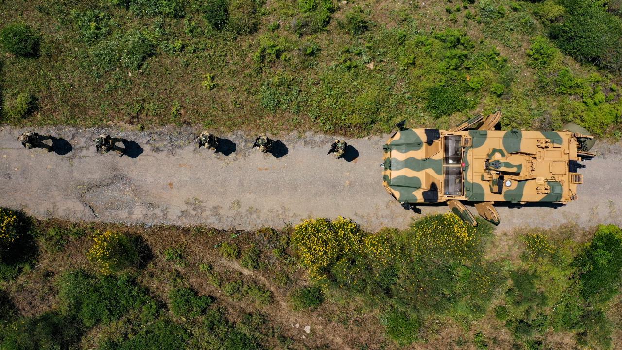Güzergahta, ağaç ve yeşillikler arasına gizlenen bomba düzeneğini tespit eden ve koordinatlarını insansız hava aracı ile belirleyen tim, arazi şartlarına uygun bomba imha robotu ile düzeneği etkisiz hale getirdi. Komandolar, arazideki başka bir düzeneği de keskin nişancı tüfeğiyle ateş ederek patlattı.