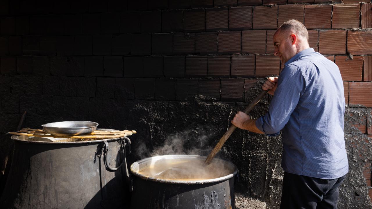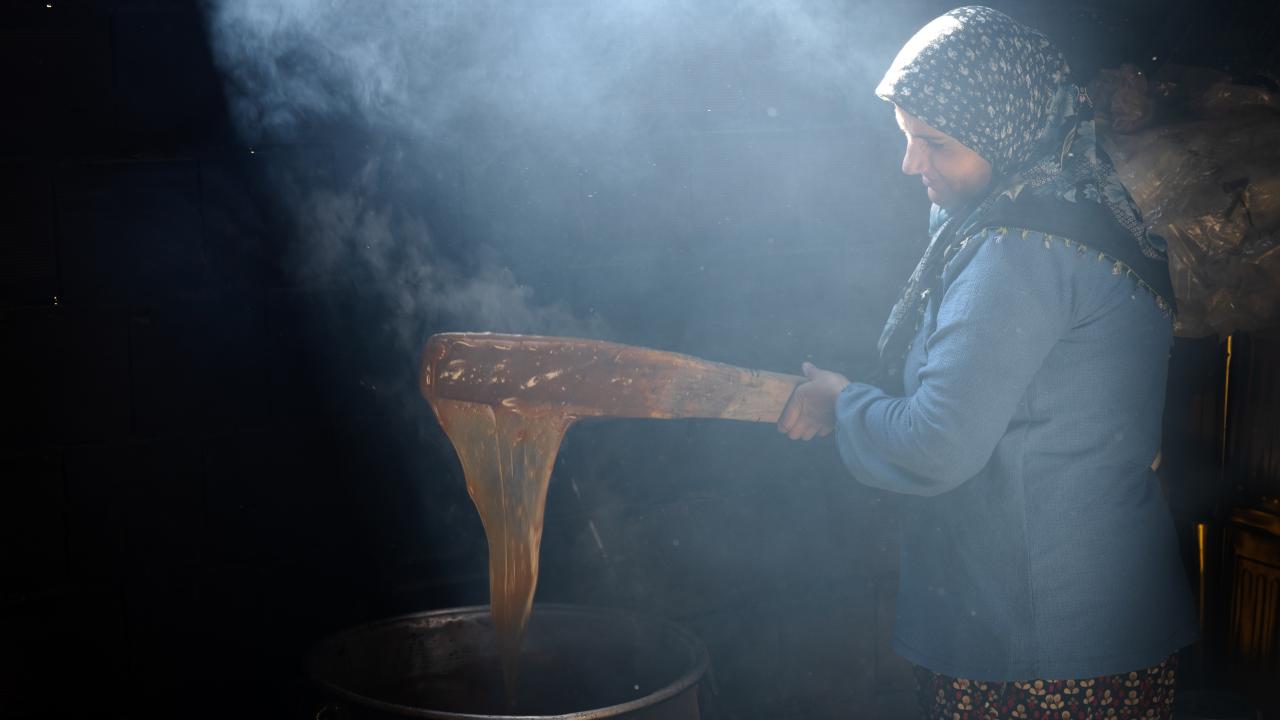 İlk olarak özenle toplanan üzümlerin belirli bir kıvama gelene kadar kaynatılmasıyla bölgede şıra da denilen pekmezli karışım hazırlanıyor.