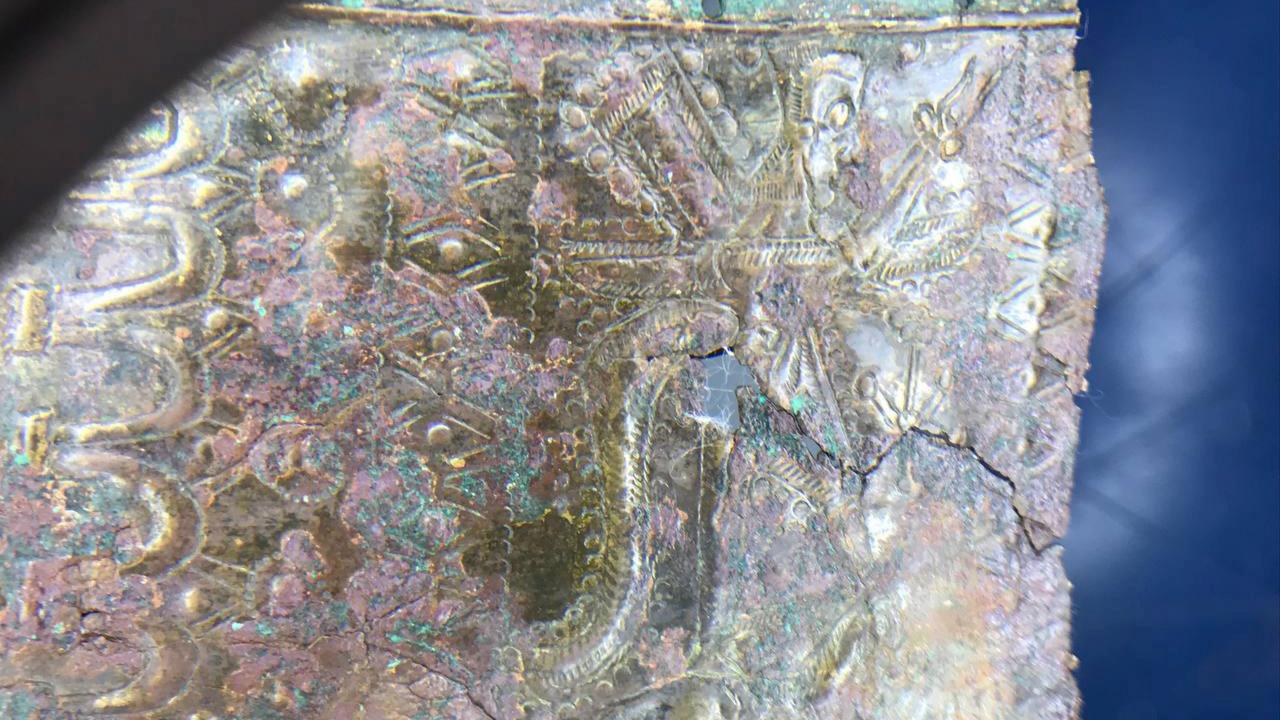 Urartu dönemi işçiliğini taşıyan parçalar halindeki kemerde, Urartuların baş tanrısı Haldi ile tanrı ve tanrıça figürleri, bitki, hayvan sembolleriyle çeşitli motiflerin işlendiği görüldü.
