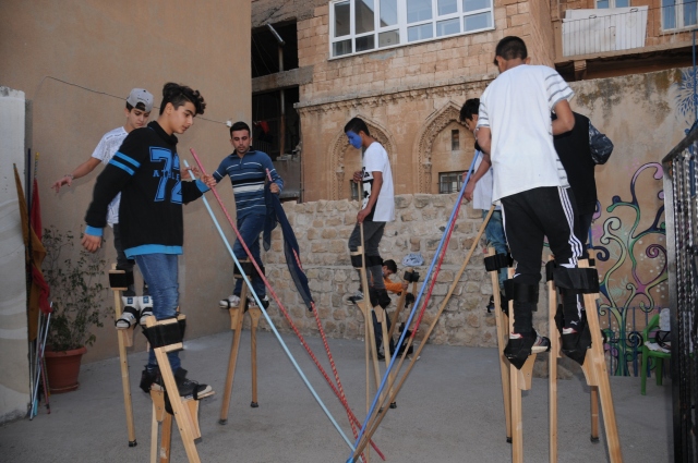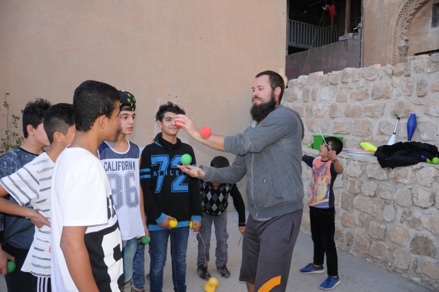 Mardin'de Her Yerde Sanat Derneği, savaş mağduru Suriyeli ve Iraklı ile dezavantajlı Mardinli çocuklara başta sirk olmak üzere çeşitli sanat dallarında eğitim veriyor. Mezopotamya Sosyal Sirk Okulunda çocuklar, sirkin yanı sıra resim, müzik, İngilizce, Türkçe, el sanatları kursuna katılıyor. Türkiye'deki gönüllülerin yanı sıra ABD ve Avrupa'dan gelen eğitmenler de öğrencilere alanlarıyla ilgili bilgiler aktarıyor.