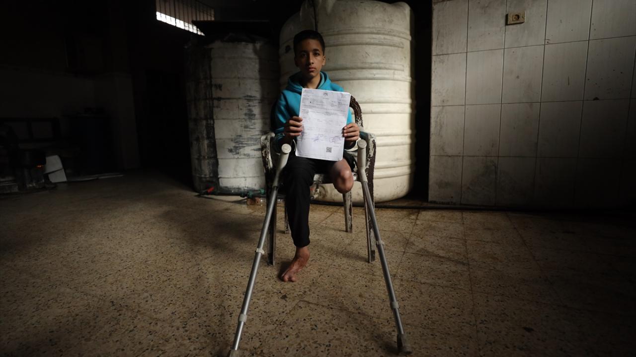 Savaş mağduru Gazzeli 14 yaşındaki Yamen tedavi olmayı bekliyor