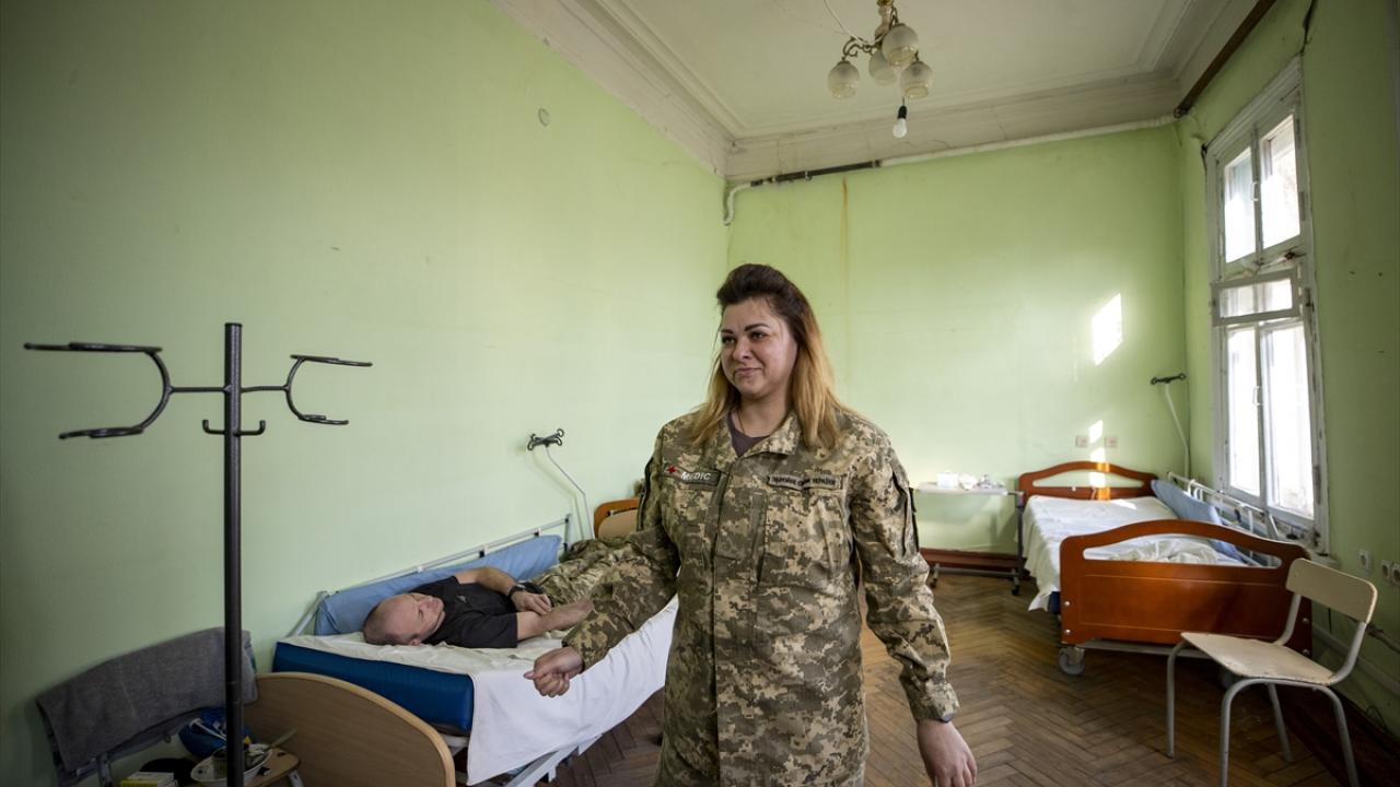 Ukrayna ordusunun 114. Bölgesel Savunma Tugayı`na bağlı, askerlerin tedavi gördüğü bir sağlık merkezinin yöneticisi Yana Prasov (24), gönüllü olarak orduya katıldığını ve 1 yıldan fazladır askerlere yardım ettiğini anlattı.