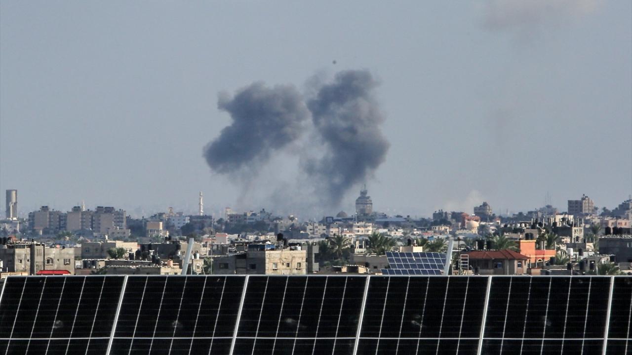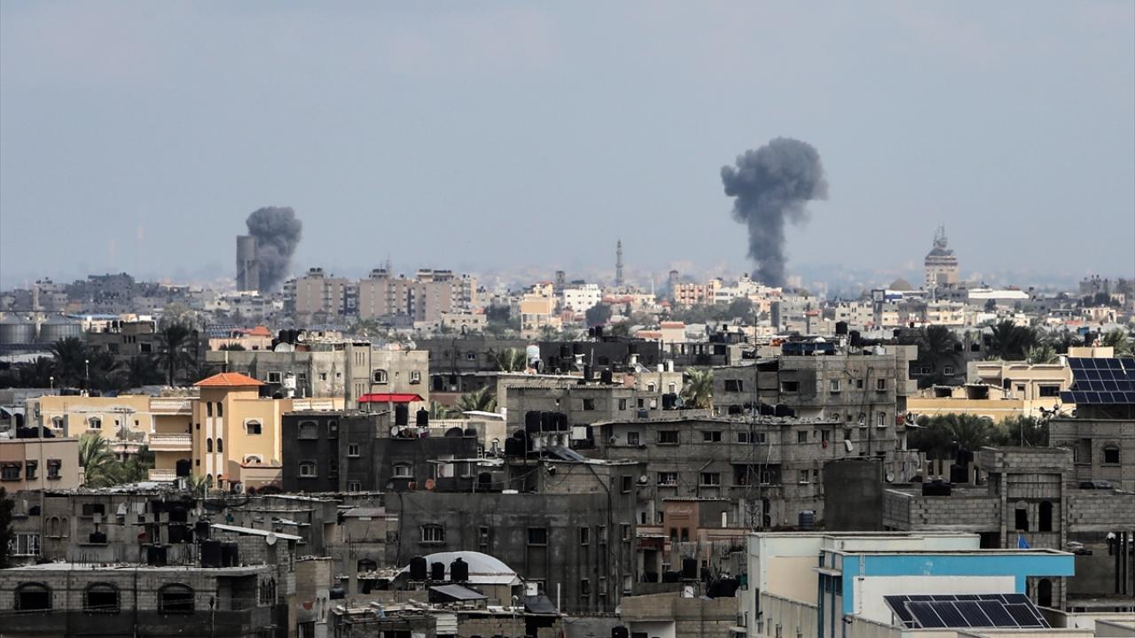 Refah kentine düzenlenen saldırılar sonucunda bölgeden dumanlar yükseldi.