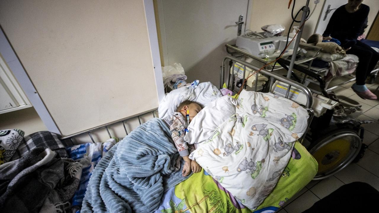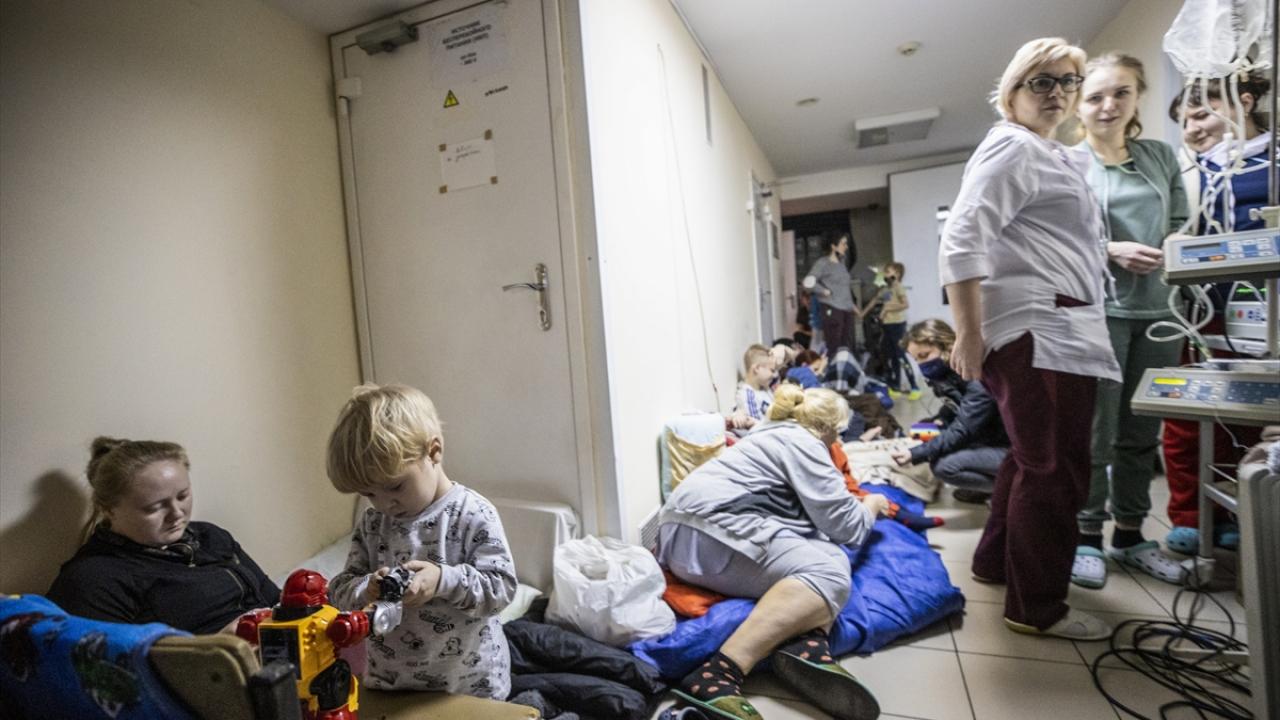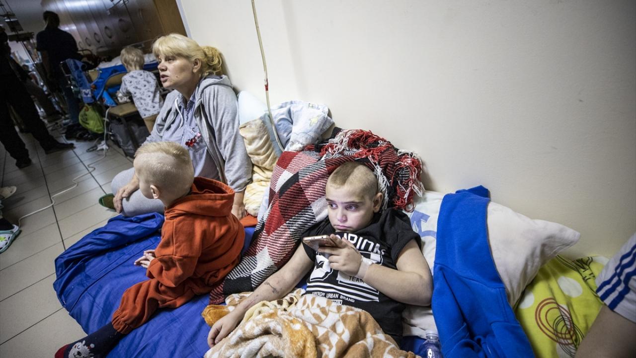 Rusya’nın saldırısı altındaki Ukrayna’nın başkenti Kiev’deki Okhmatdyt Çocuk Hastanesinde tedavi gören ve aralarında kanser hastalarının da bulunduğu çocuklar, çatışmalardan zarar görmemeleri için hastanenin bodrum katı ve sığınağındaki koridorlara taşındı.