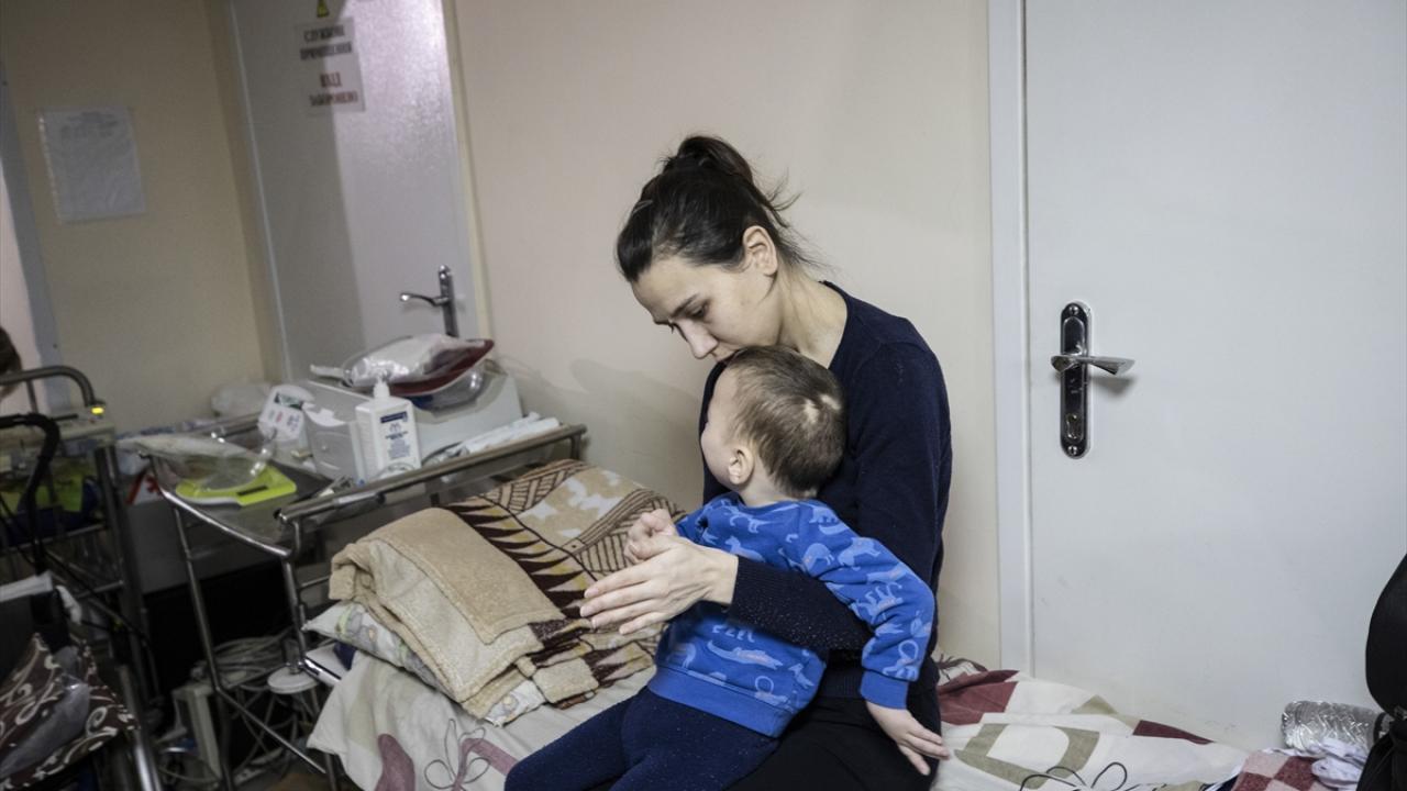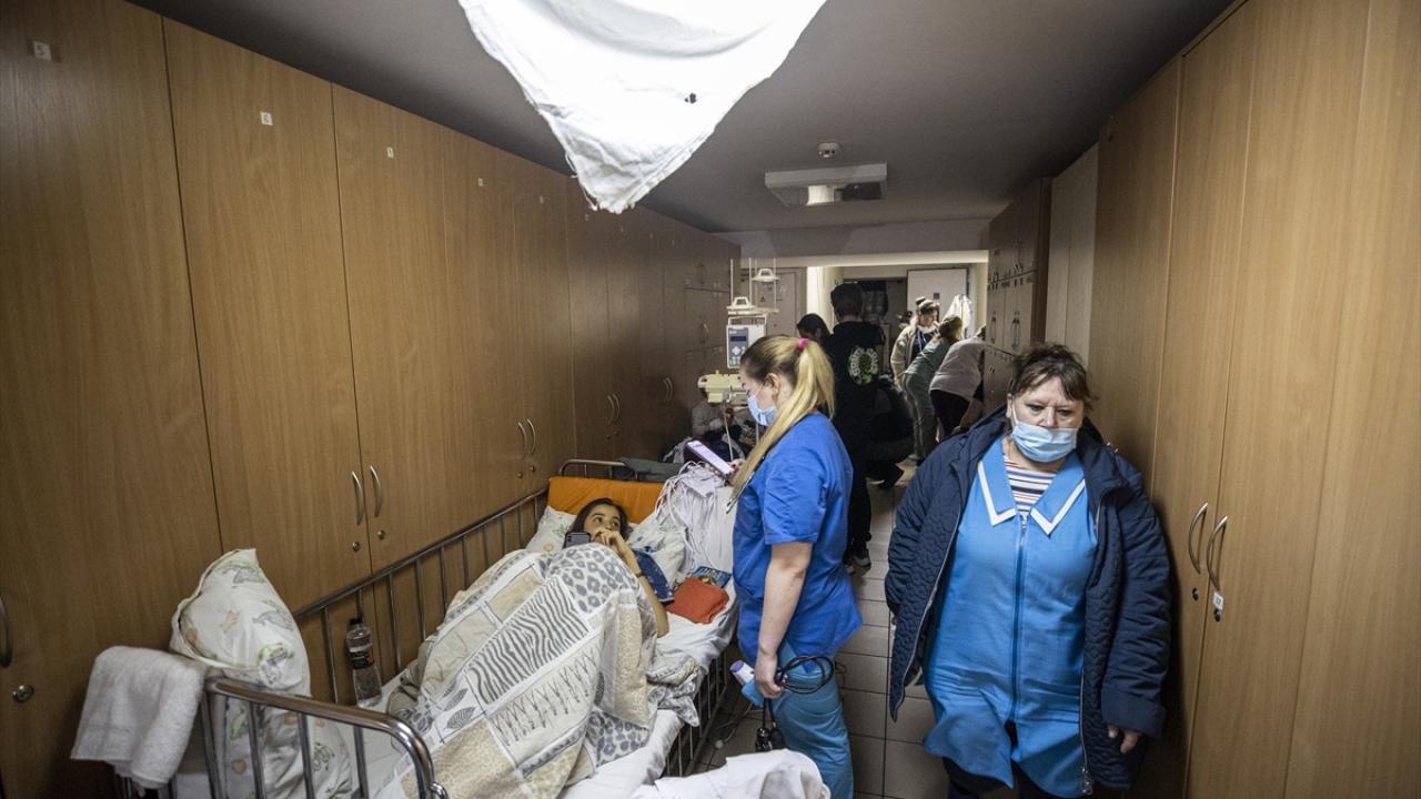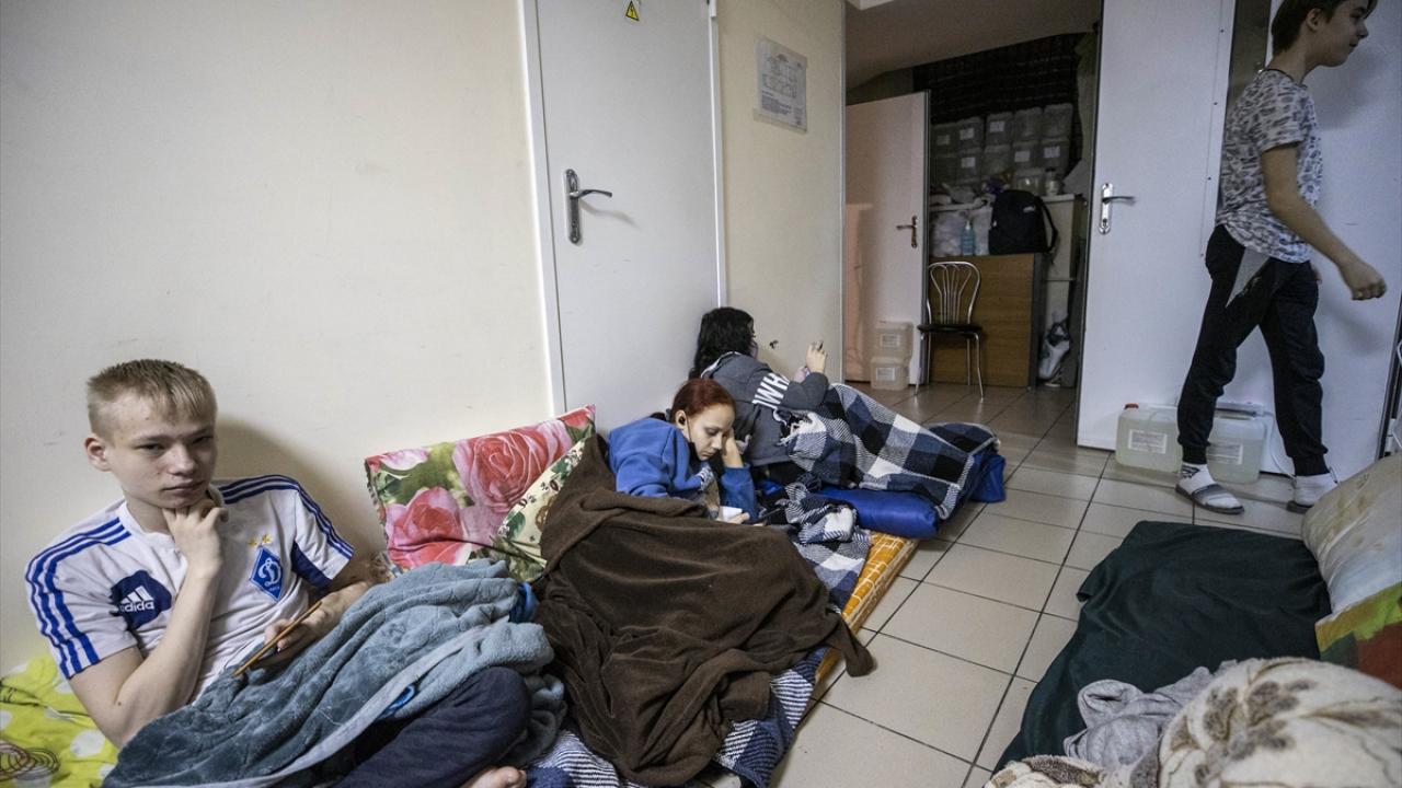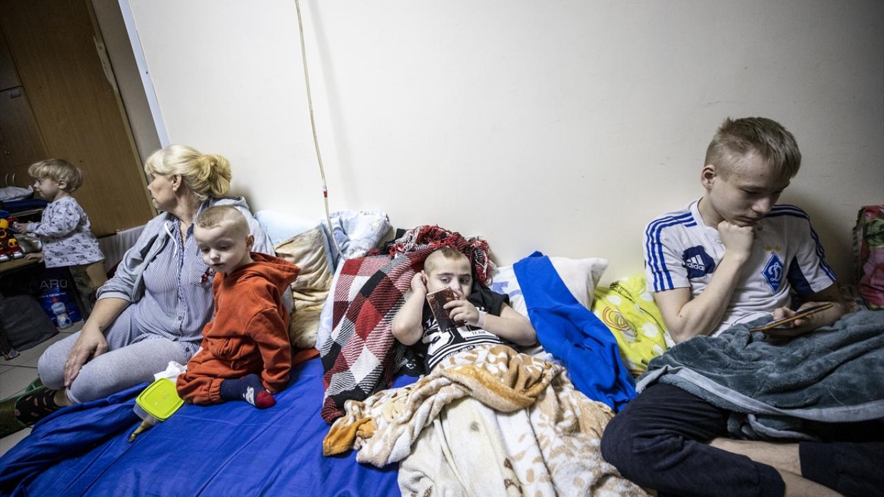 Rusya’nın saldırısı altındaki Ukrayna’nın başkenti Kiev’deki Okhmatdyt Çocuk Hastanesinde tedavi gören ve aralarında kanser hastalarının da bulunduğu çocuklar, çatışmalardan zarar görmemeleri için hastanenin bodrum katı ve sığınağındaki koridorlara taşındı.