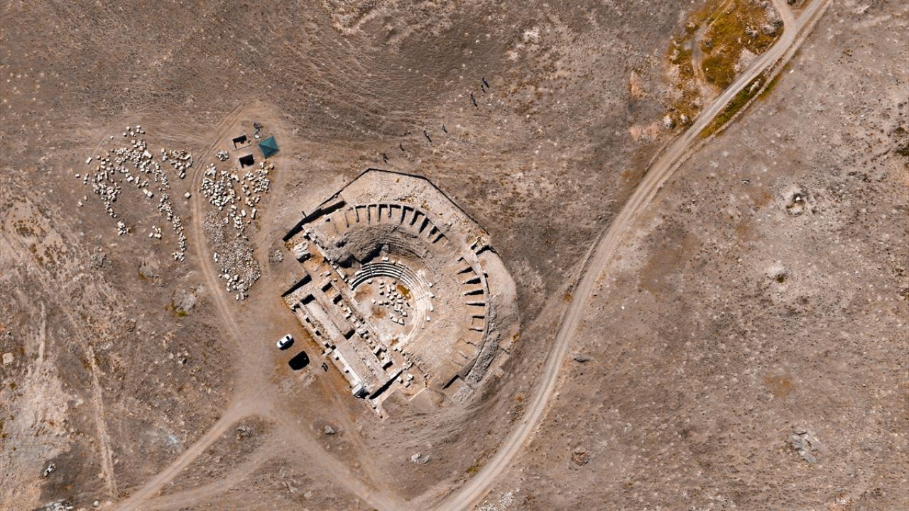 Arkeolojik yüzey araştırmalarıyla tespit edilen ve 2021`de kazı çalışmalarına başlanan Antik Roma Dönemi`nden kalma tiyatronun güneyinde 2 kuyu mezar olduğu belirlendi.