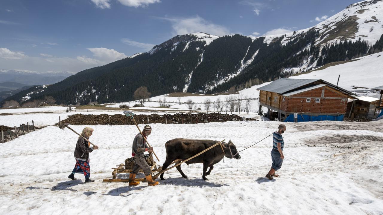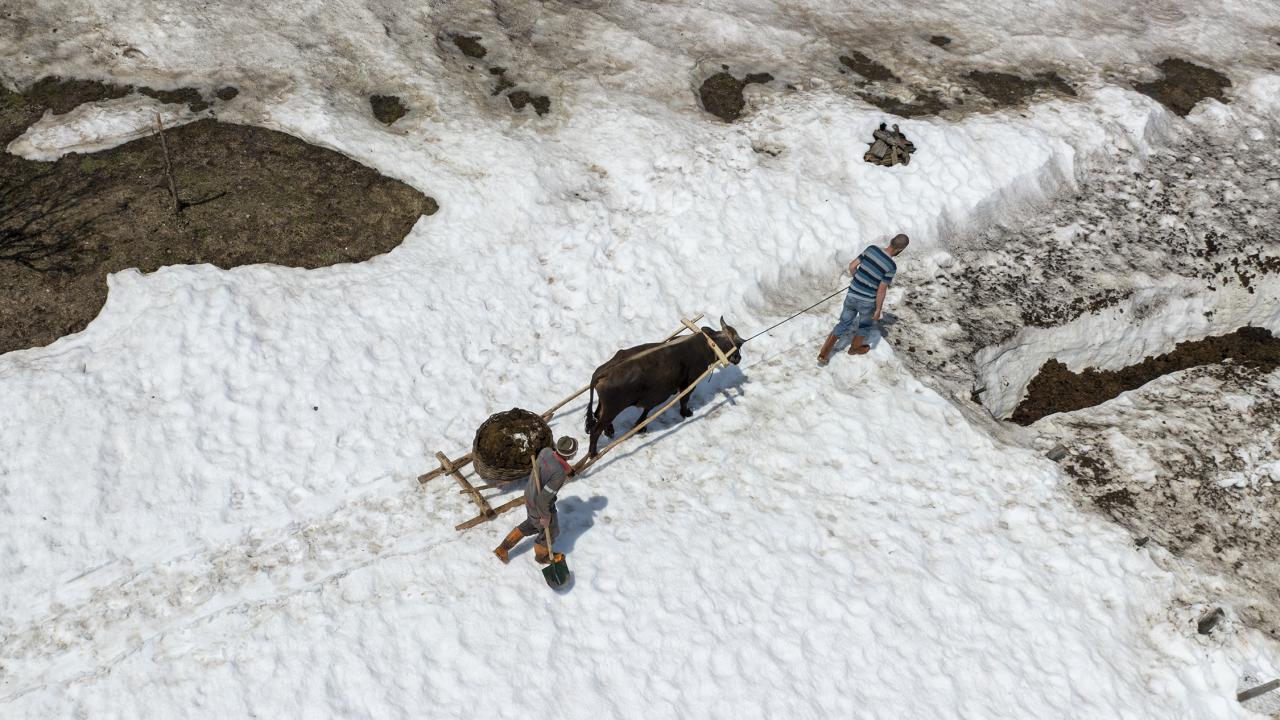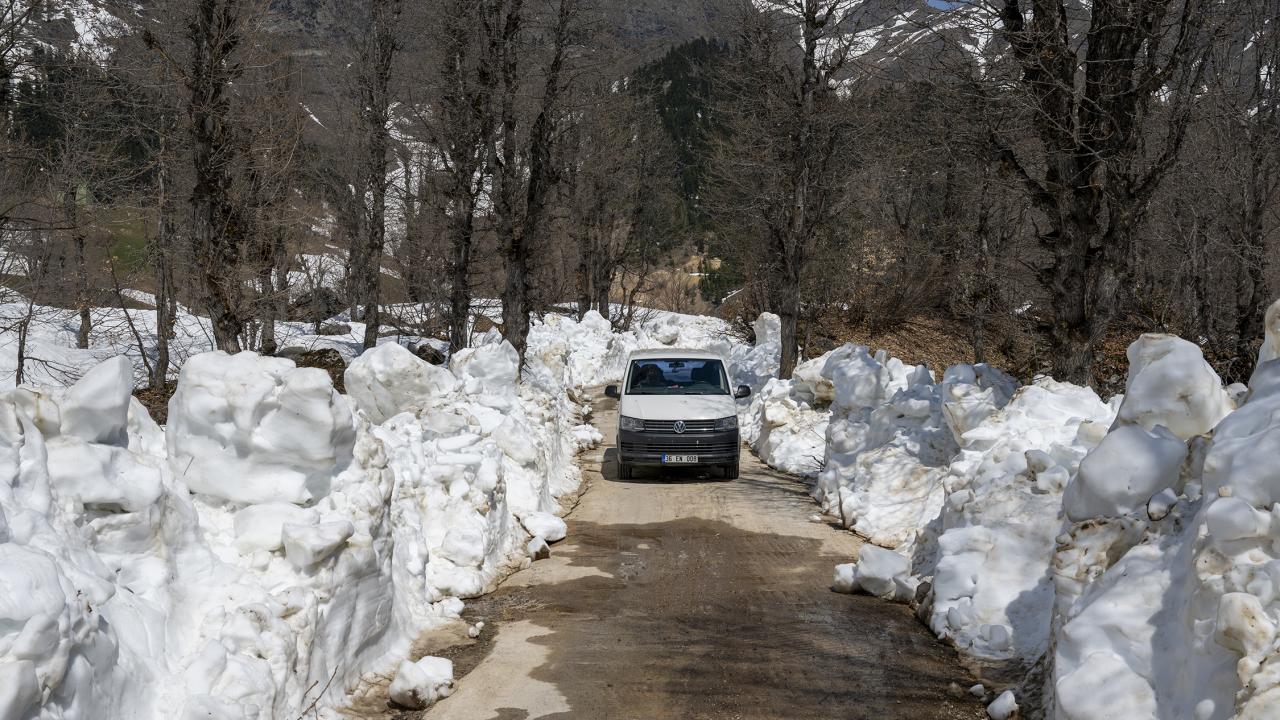 Yurdun birçok bölümünde sıcak hava hakimken kar nedeniyle baharda da kışı yaşayan köylüler, zor koşullarda yaşamlarını sürdürüyor.