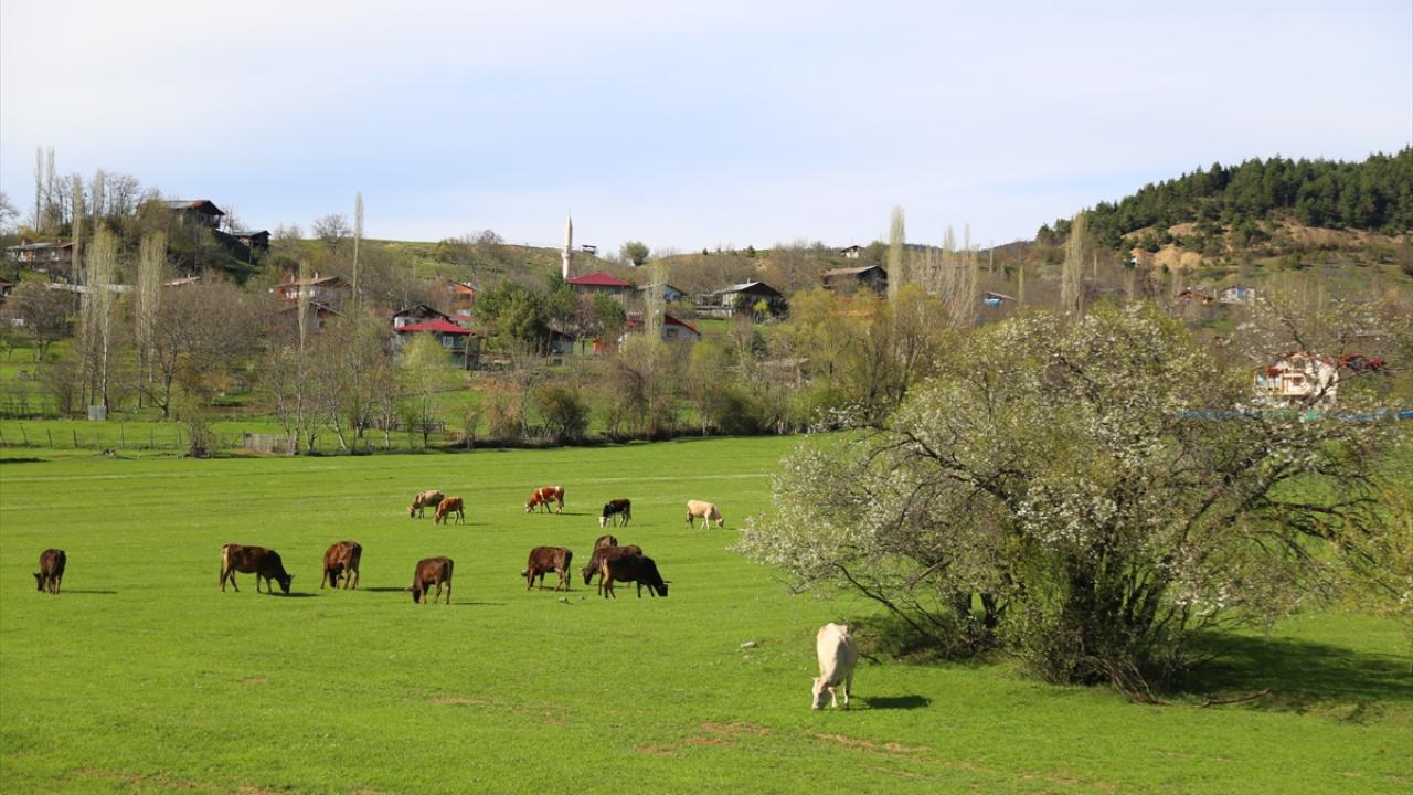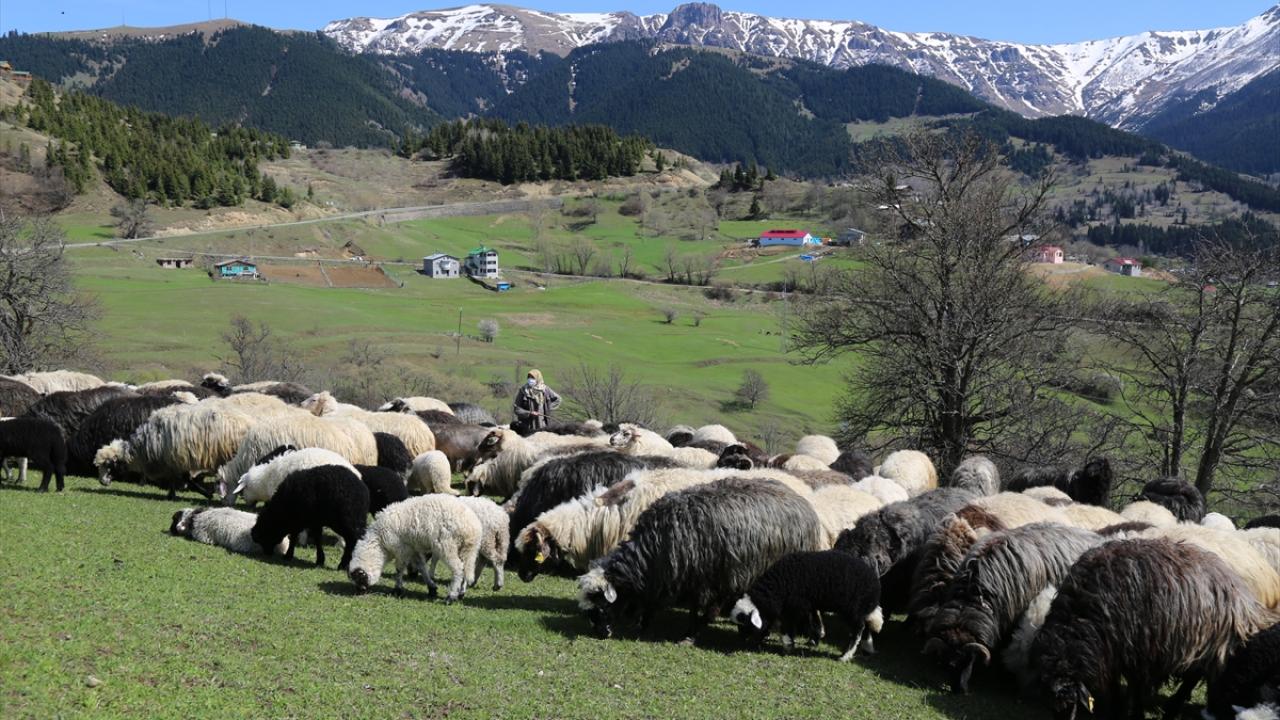 Yavuzköy köyünde havaların ısınmasıyla yeşile bürünen meralarda baharla birlikte doğum yapan koyunların kuzularıyla birlikte otlaması güzel görüntü oluşturdu.