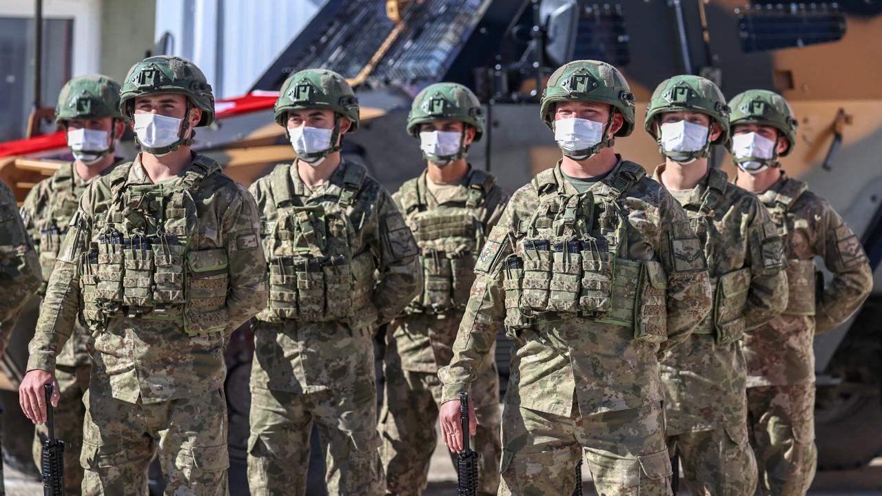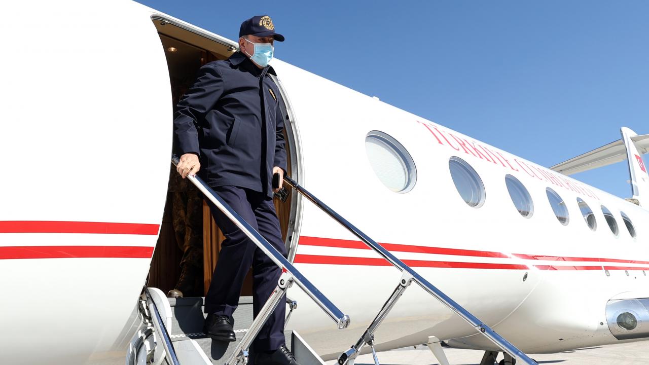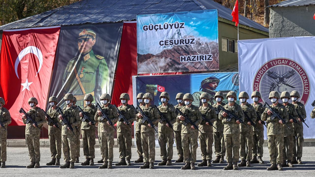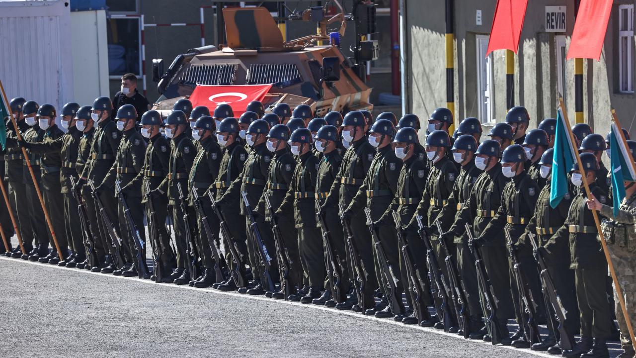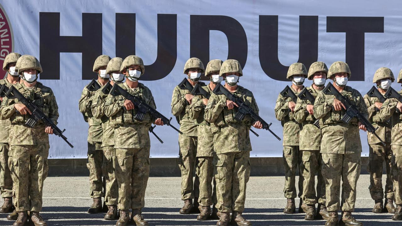 Milli Savunma Bakanı Akar`ın sancağı, 6. Hudut Tugay Komutanı Tuğgeneral İlker Ertuğrul`a tesliminin ardından Cumhurbaşkanı Erdoğan, telefondan Mehmetçiğe hitap etti.