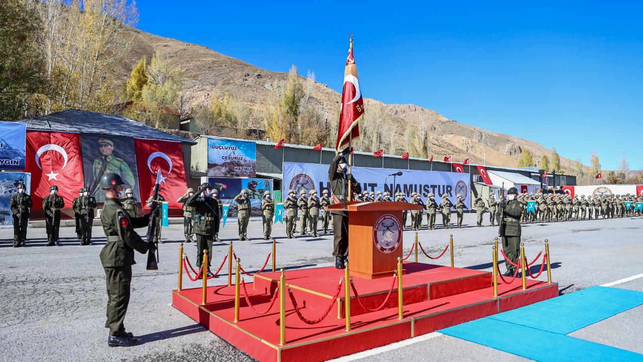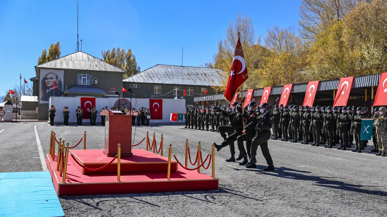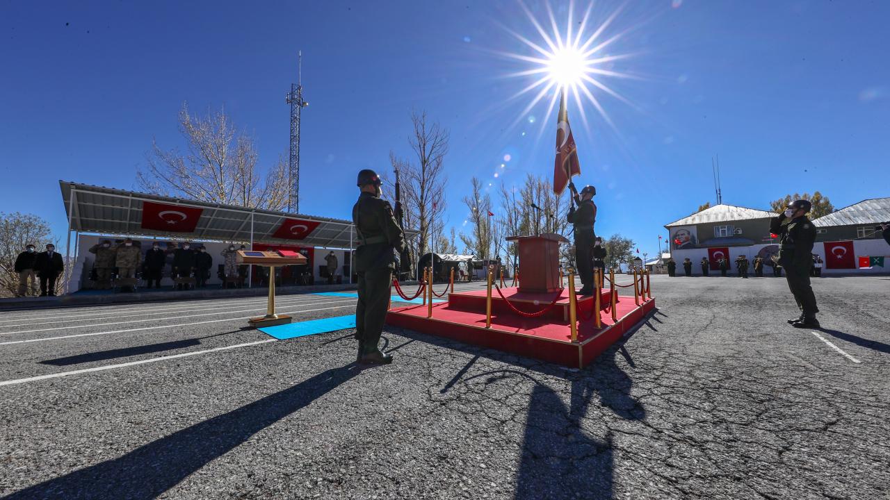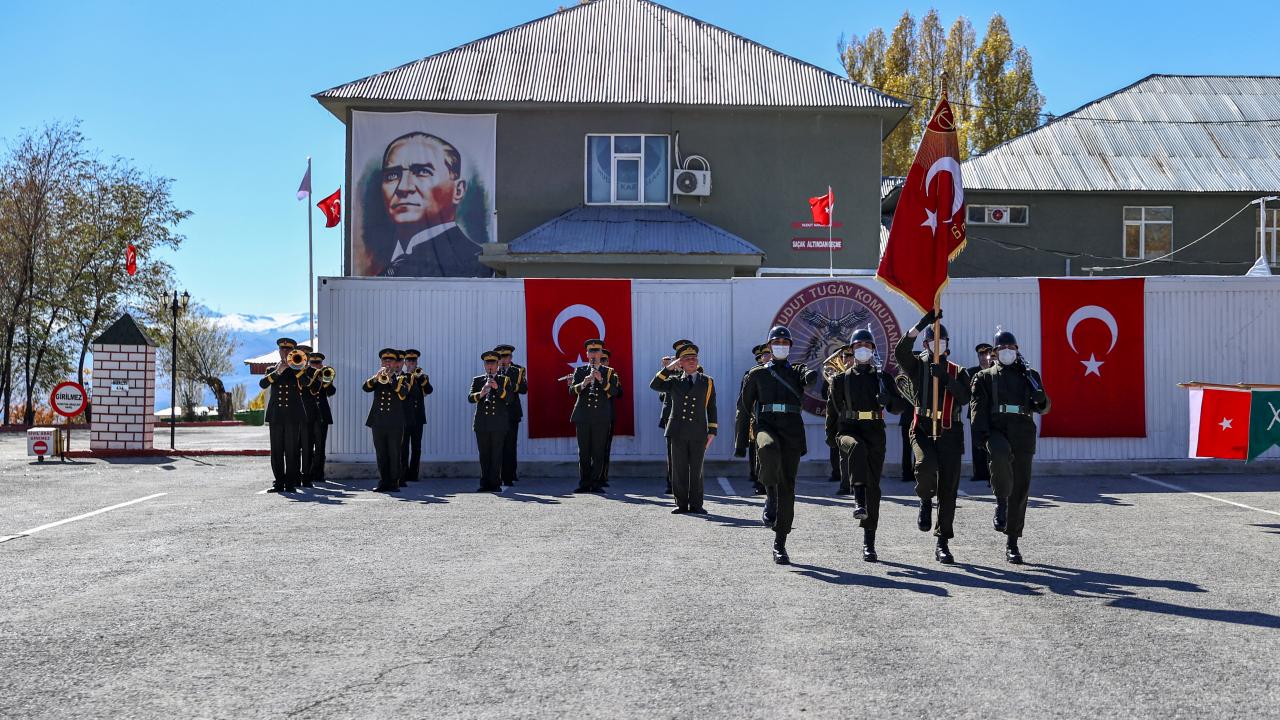 Başkale ilçesindeki 6. Hudut Tugay Komutanlığında düzenlenen tören, sancağın alana getirilmesiyle başladı. Sancağın platformdaki yerini almasının ardından saygı duruşunda bulunuldu, İstiklal Marşı okundu.