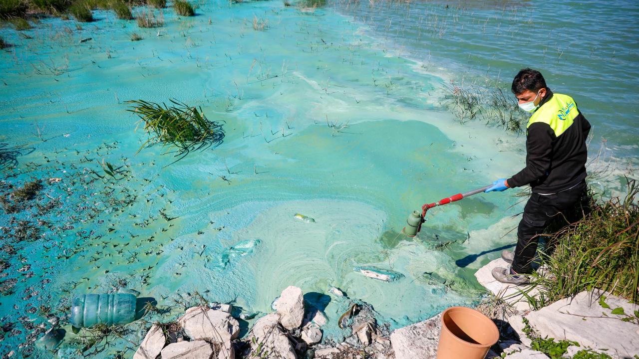 İstanbul'un su kaynaklarından biri olan Sazlıbosna Barajı'nın üzerini kaplayan yeşil ve mavi tabaka endişe yarattı.