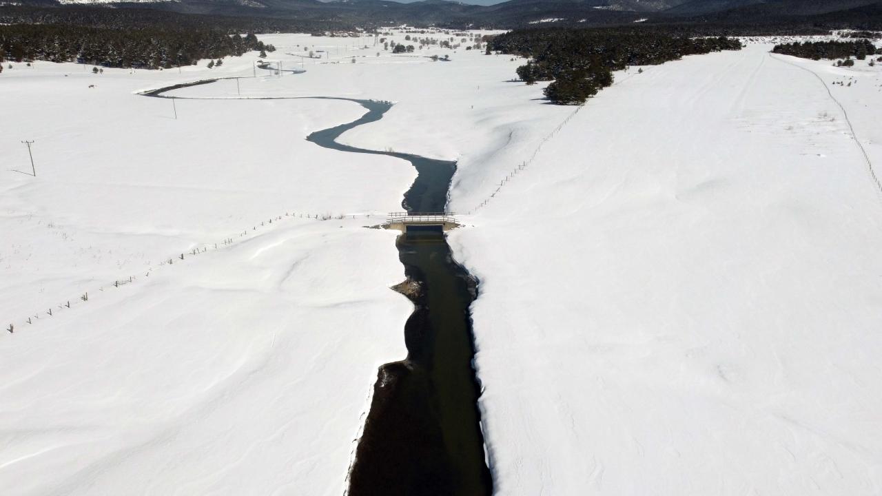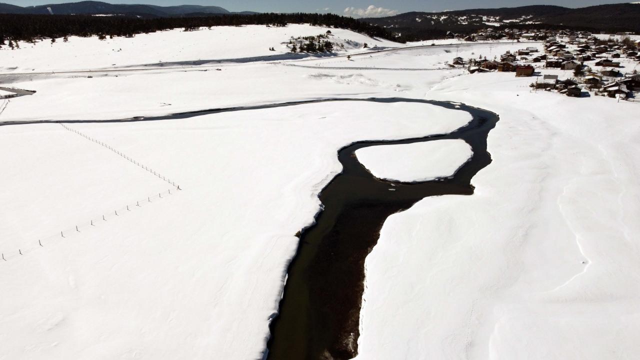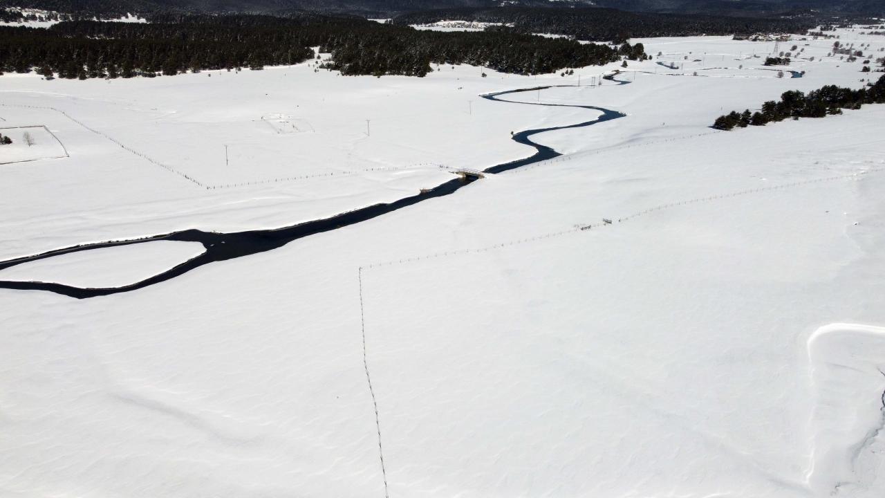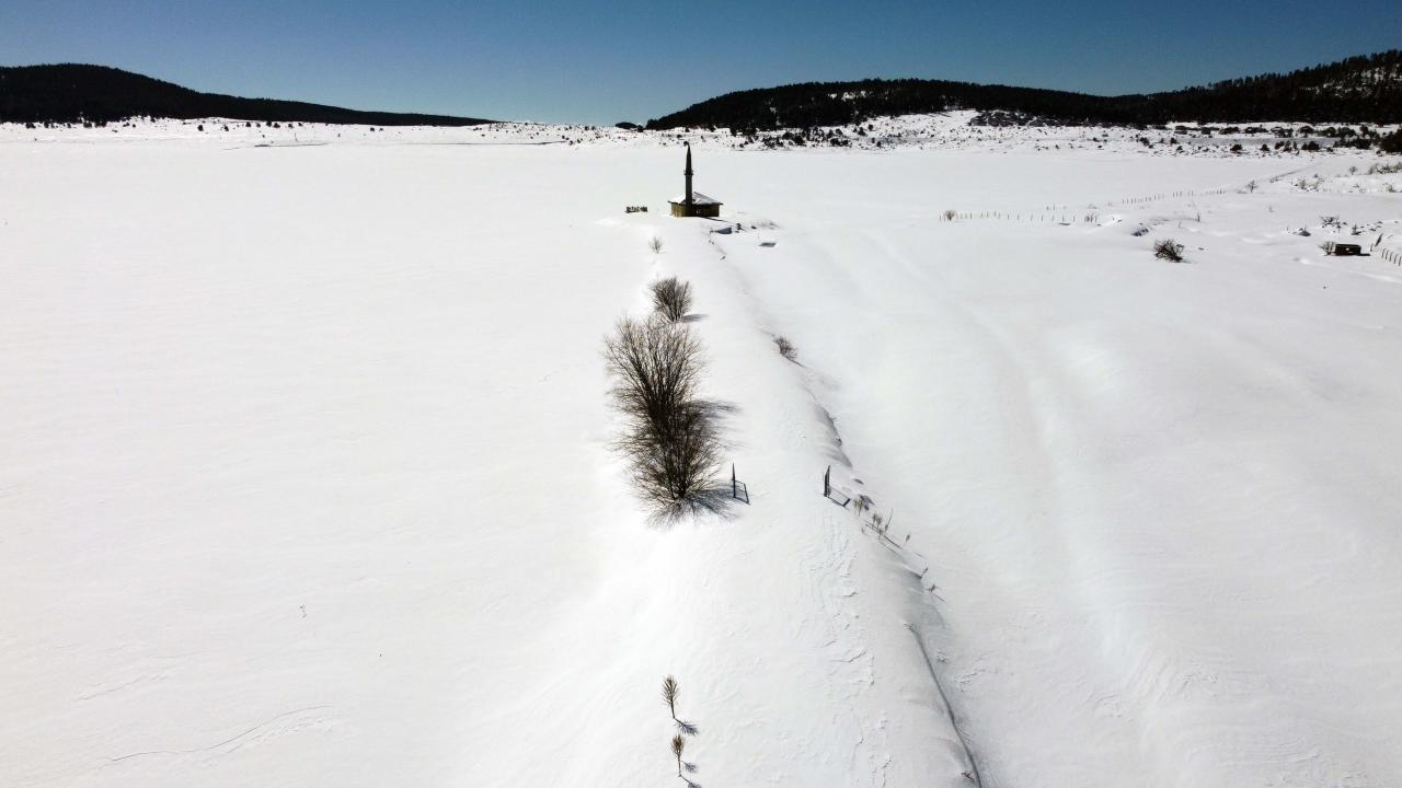 Çevre uzunluğu 22 kilometre olan, 50 milyon metreküp su kapasitesine sahip Seben Gölü`nün bulunduğu alanda kar kalınlığı yer yer 70 santimetreye ulaştı.