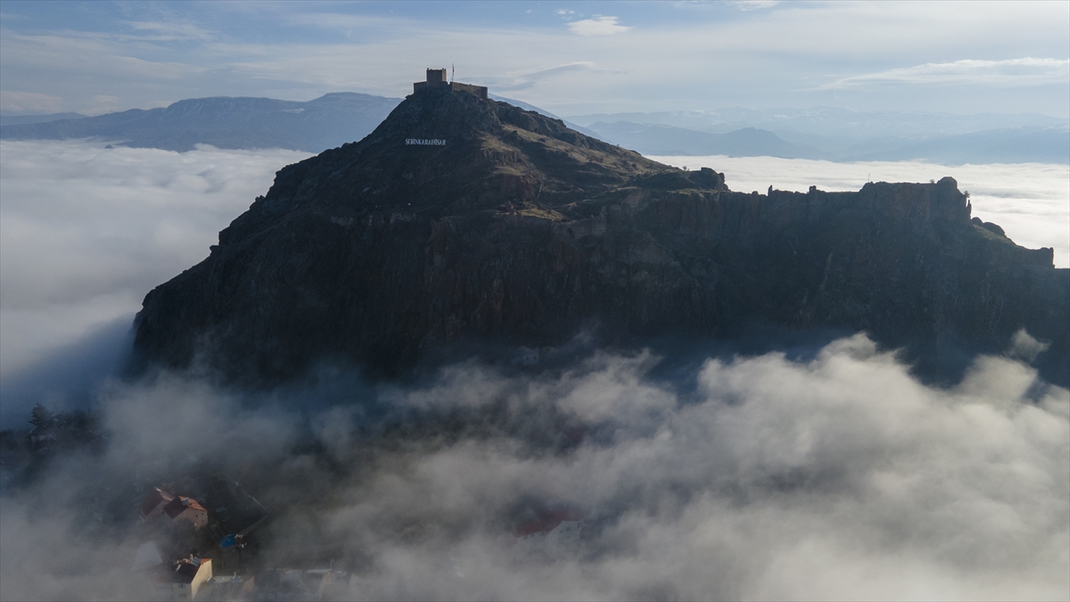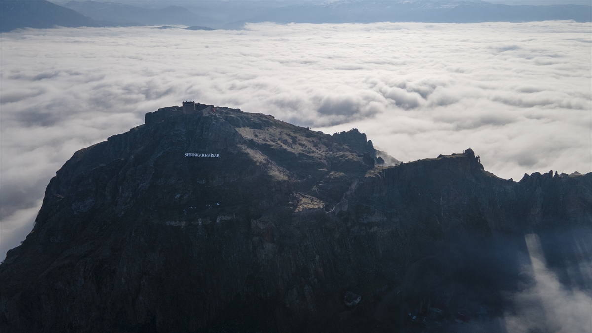 Giresun'un Şebinkarahisar ilçesinde gökyüzünü kaplayan sis tabakası dronla görüntülendi.