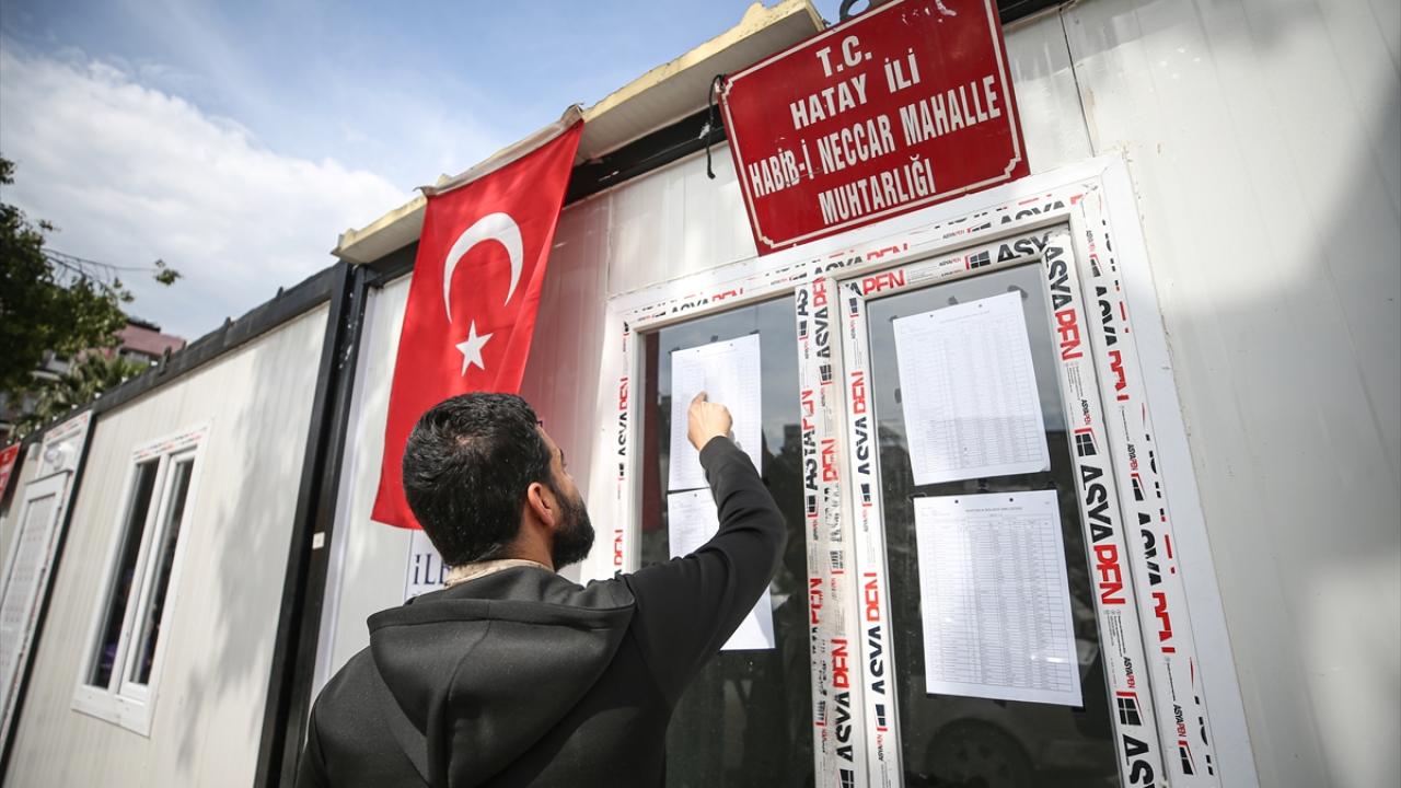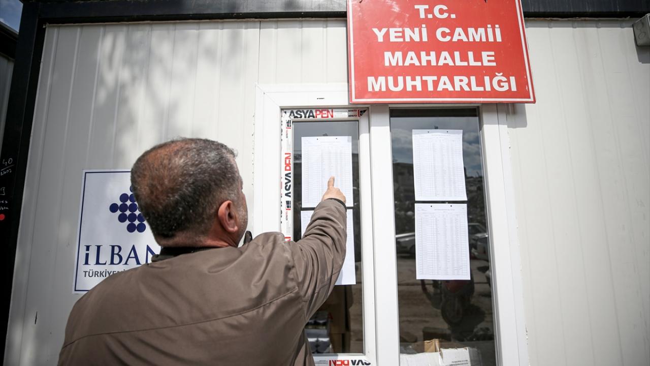 Kahramanmaraş merkezli depremlerde yıkımın en çok yaşandığı Hatay'da, Cumhurbaşkanı Seçimi ve 28. Dönem Milletvekili Genel Seçimine ilişkin seçmen listeleri, konteynerde hizmet veren muhtarlıklarda askıya çıkarıldı.