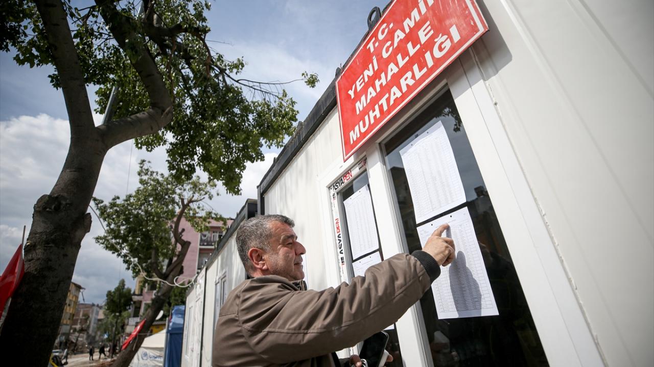 Bazı muhtarların da görevini sürdüğünü konteynerdeki muhtarlıklarda, 14 Mayıs`ta yapılacak seçimlere ilişkin seçmen listeleri askıya çıkarıldı.