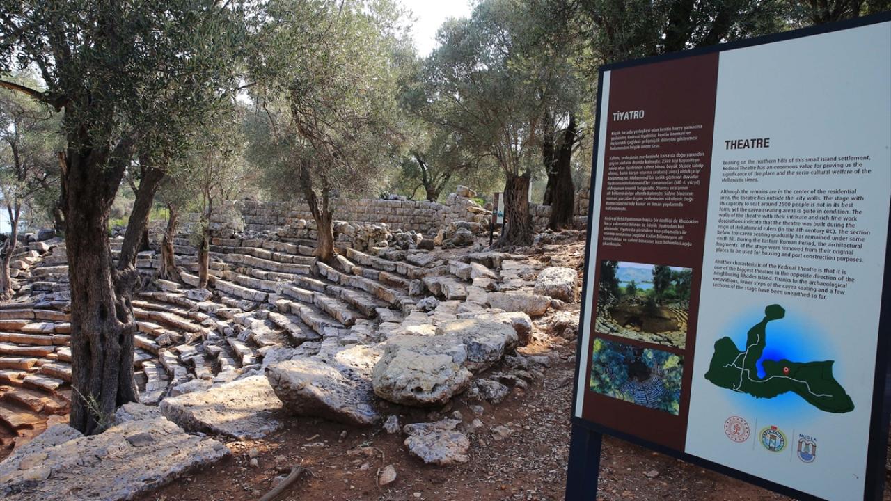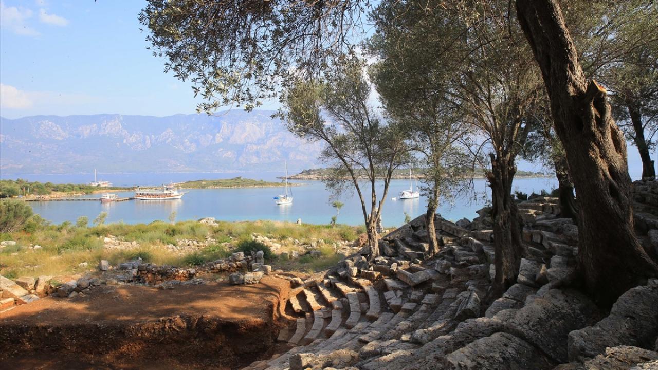 Gökova Körfezi'ne hakim konumda bulunması, sadece denizden ulaşılması ve korunaklı limanlarıyla dikkati çeken Kedrai Antik Kenti'nde yer alan tiyatro ile surlar gün yüzüne çıkarılıyor.