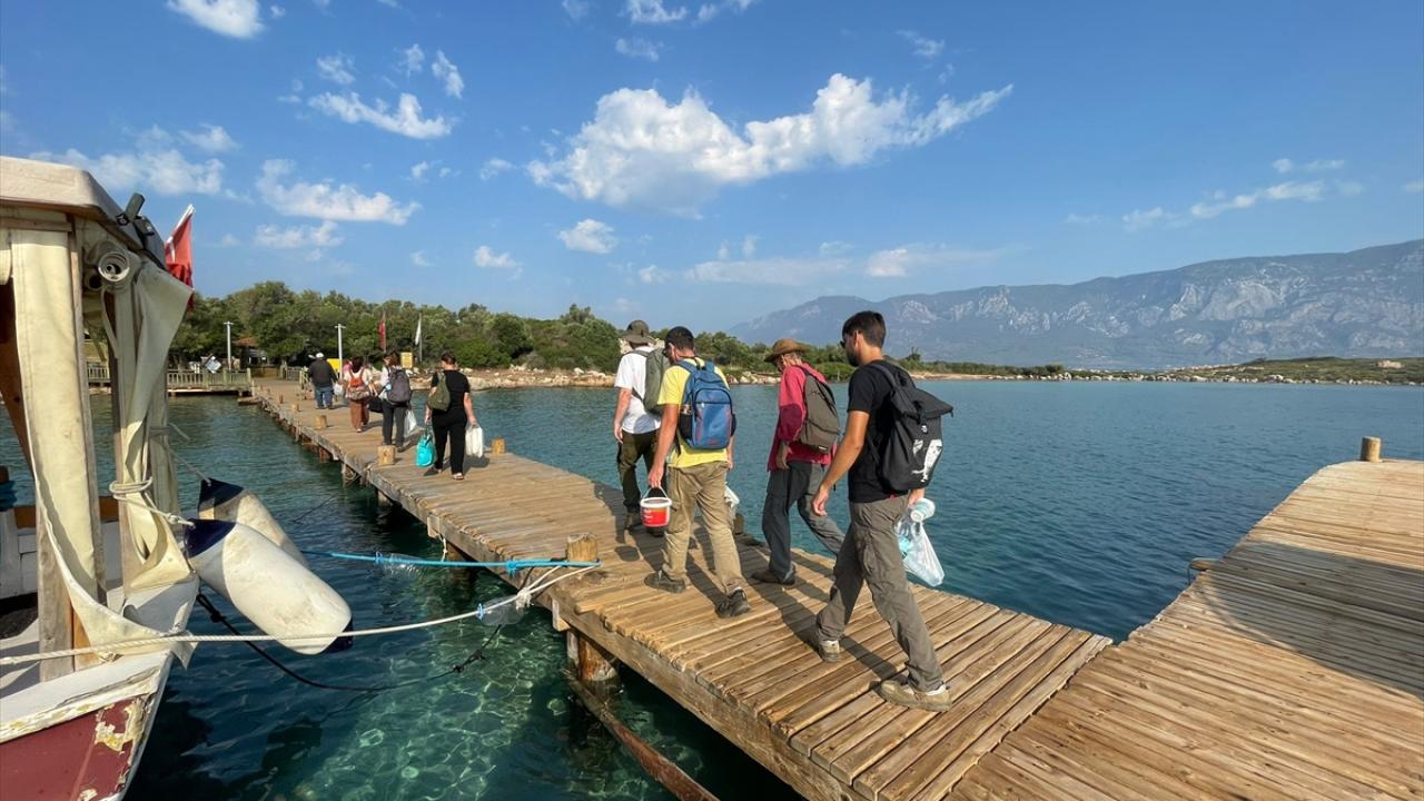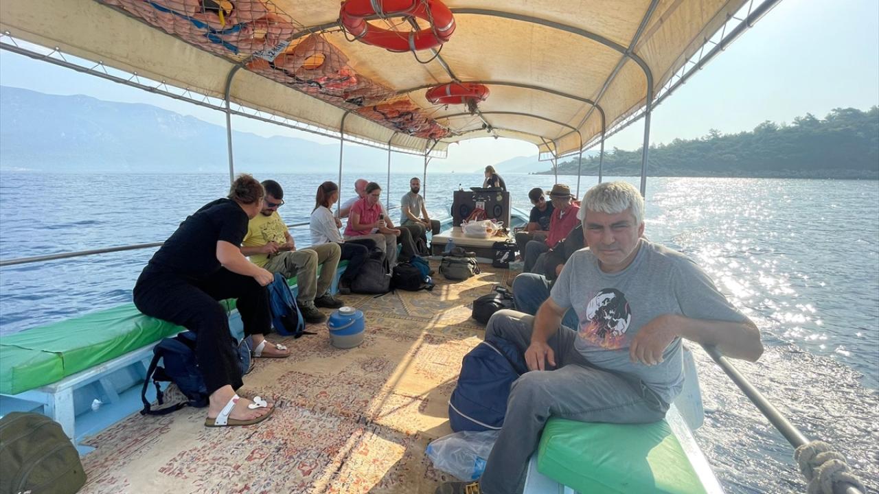 Kazı ekibi, antik kentin bulunduğu Sedir Adası`na gitmek için Marmaris-Gökova kara yolunun 20. kilometresinden Çamlı Mahallesi`ndeki iskeleye geliyor. Buradan teknelere binen ekip, yaklaşık yarım saatlik yolculuğun ardından antik kente ulaşıyor.