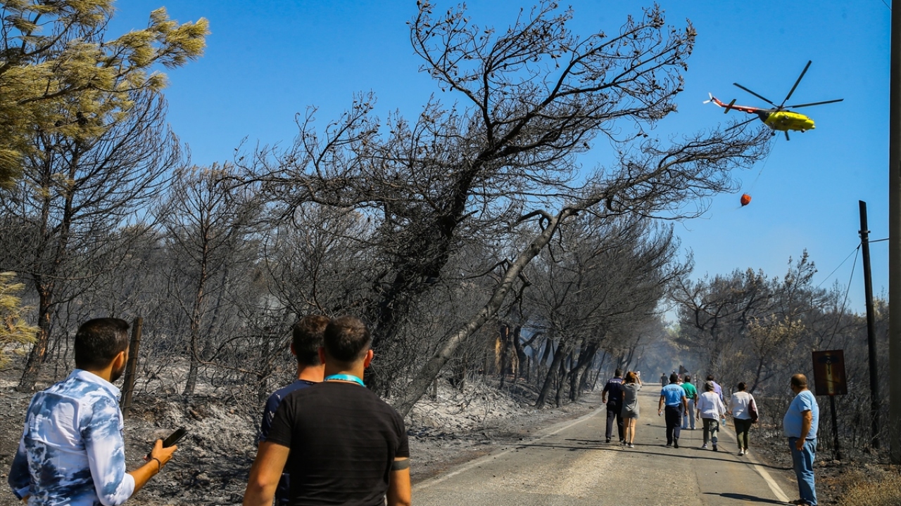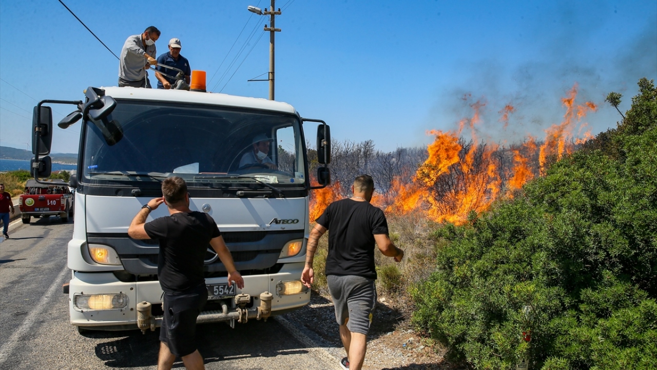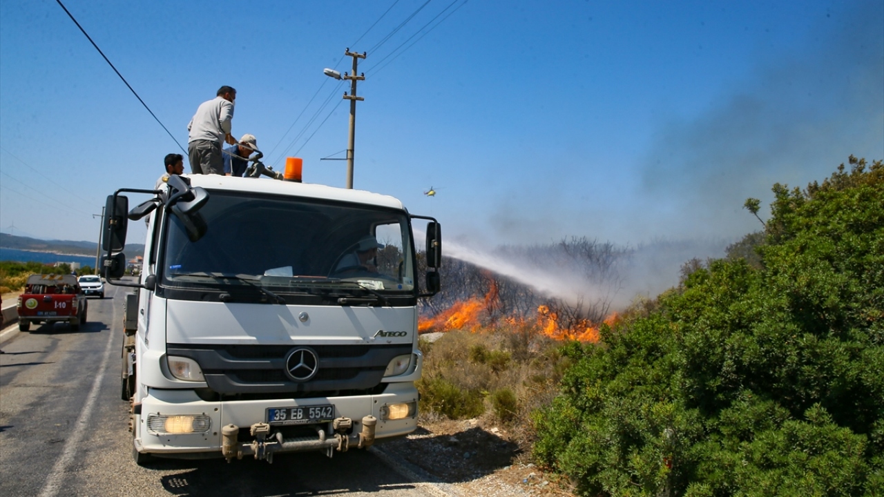 İzmir'in Seferihisar ilçesinde makilik ve ormanlık alanda yangın çıktı.