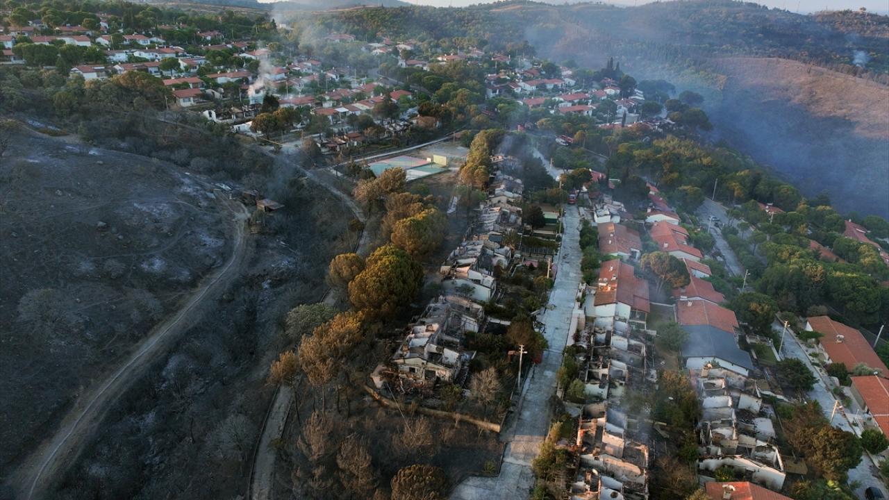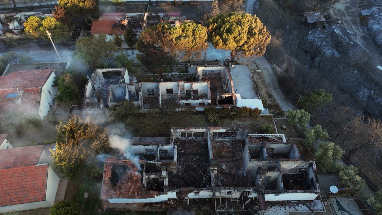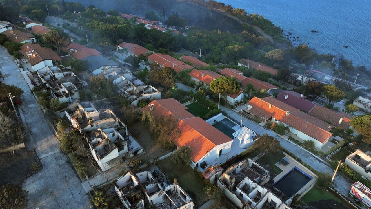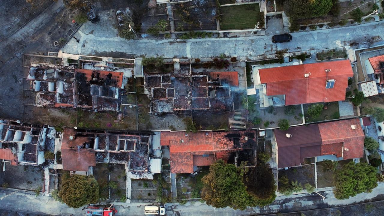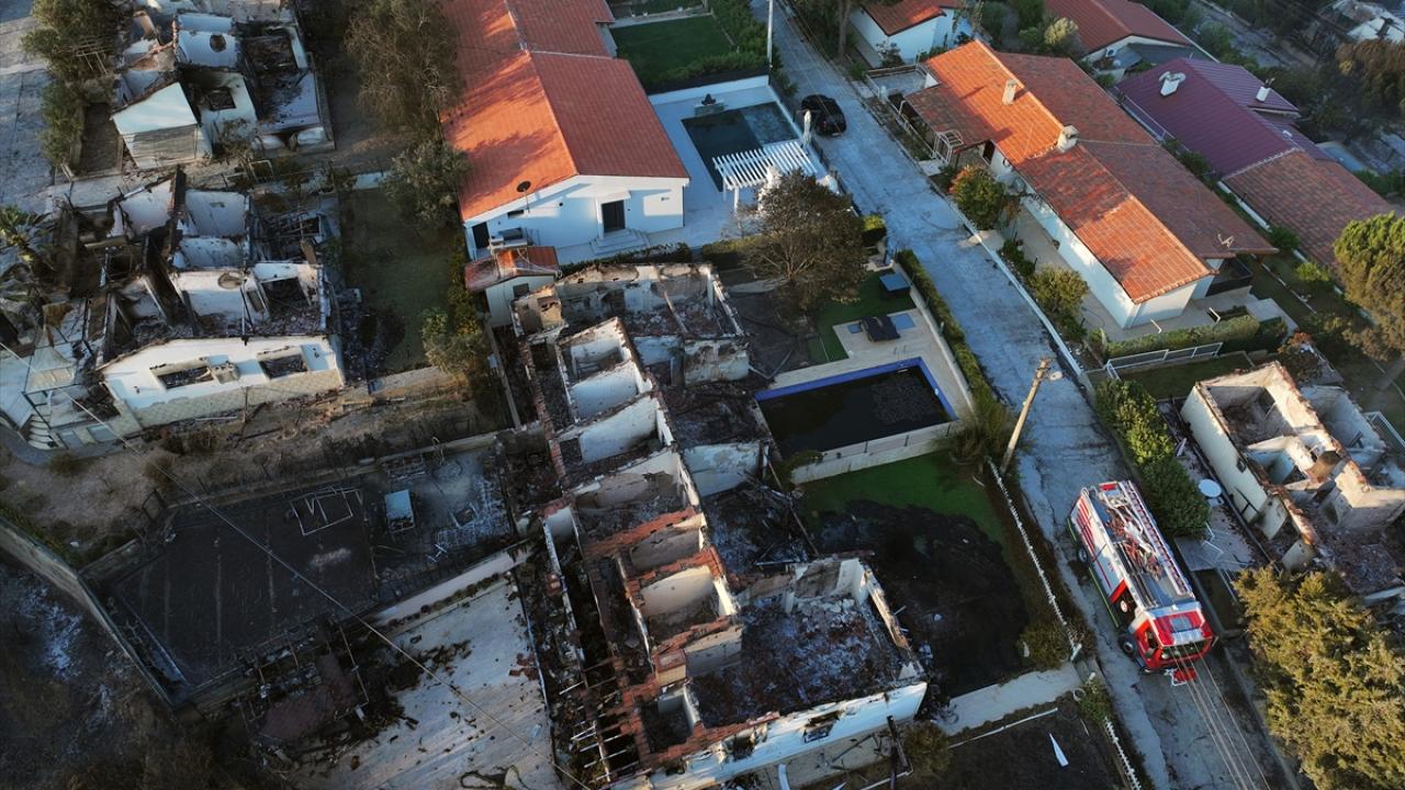 Öte yandan yangından zarar gören Doğankent Sitesi havadan görüntülendi.