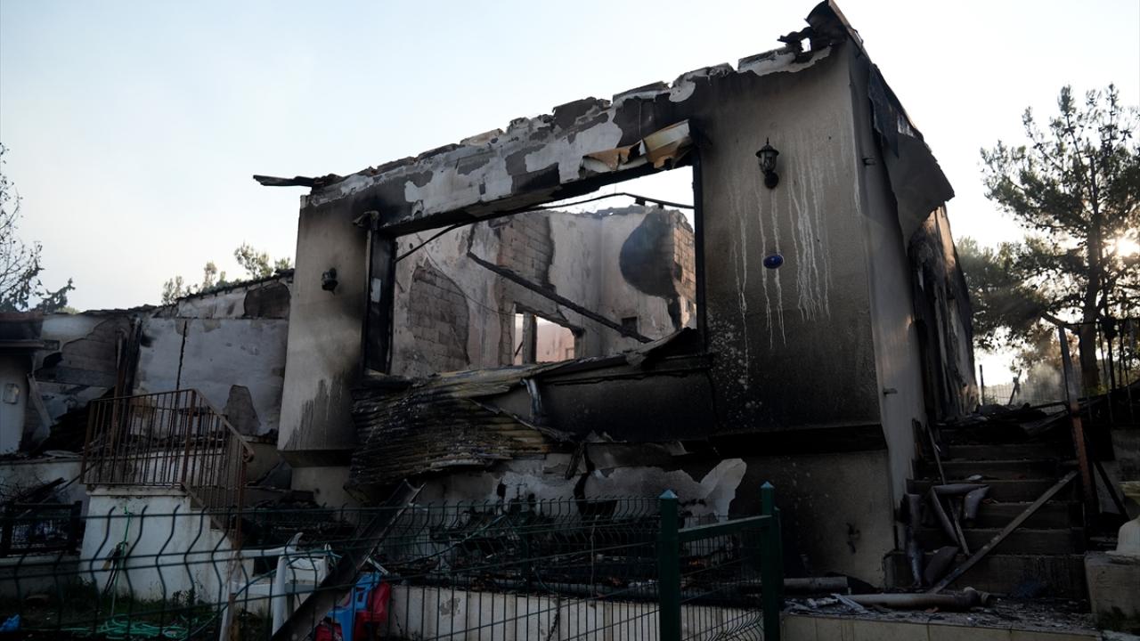 İtfaiye ekipleri yanan evlerdeki soğutma çalışmalarını sürdürüyor.