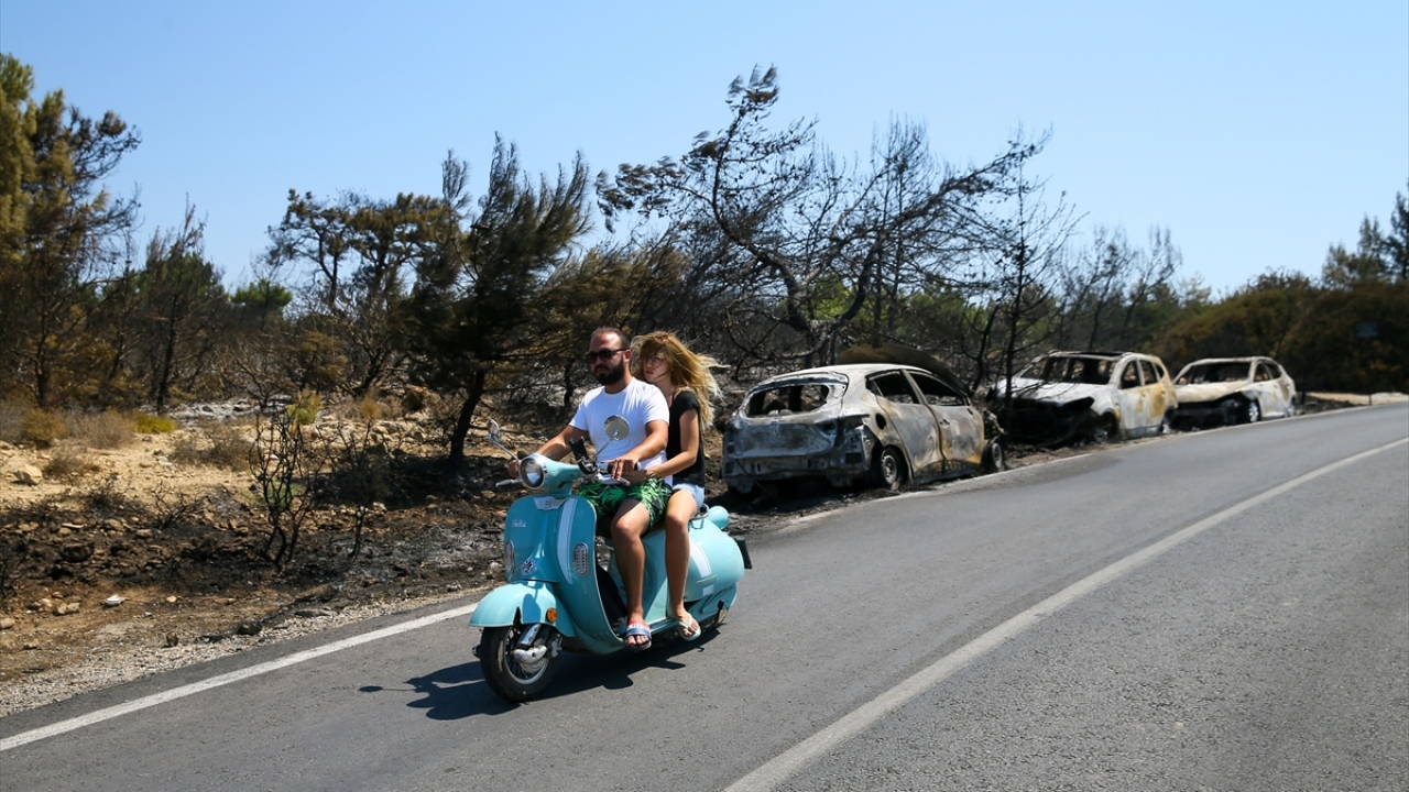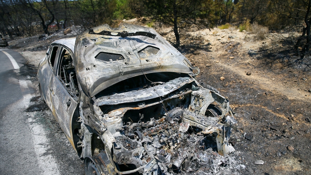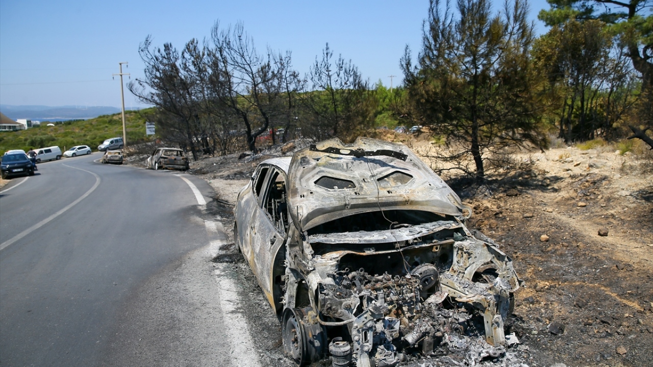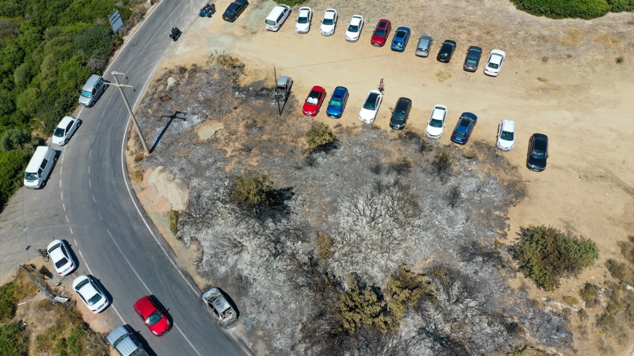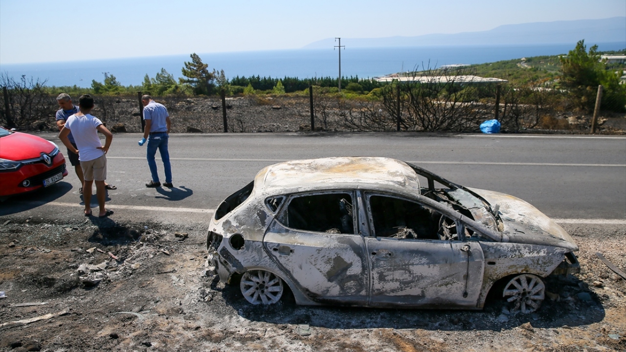 Aracını yol üzerinde park ettikten sonra arkadaşlarıyla plaja gittiğini ve yaklaşık 2 saat sonra duman yükseldiğini gördüğünü belirten Erbey, "Koşarak park halindeki aracımın yanına gittim. Alevlerden dolayı araca yaklaşamadım. Hem benim aracım hem de başkalarının aracı yandı." diye konuştu.