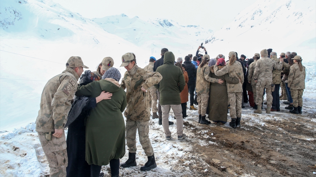Van'da, Bahçesaray kara yolundaki Karabet Geçidi'nin 33. kilometresinde düşen çığın altında kalarak şehit olan 9 askerin yakınları, 42 kişinin yaşamını yitirdiği çığ bölgesinde duygusal anlar yaşadı.