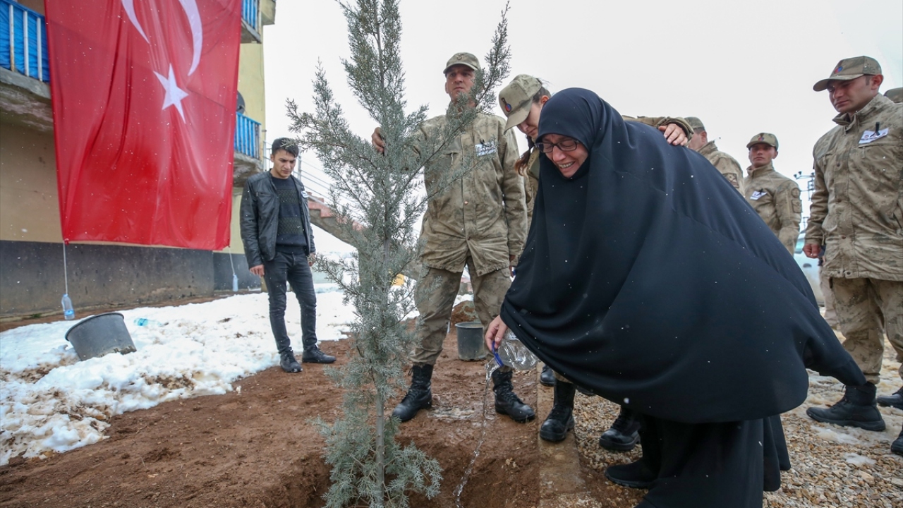 Çocuklarının kaldığı odaları gezen, Türk bayrağıyla örtülü yataklarını gören aileler, karakolların bahçesine fidan dikti.