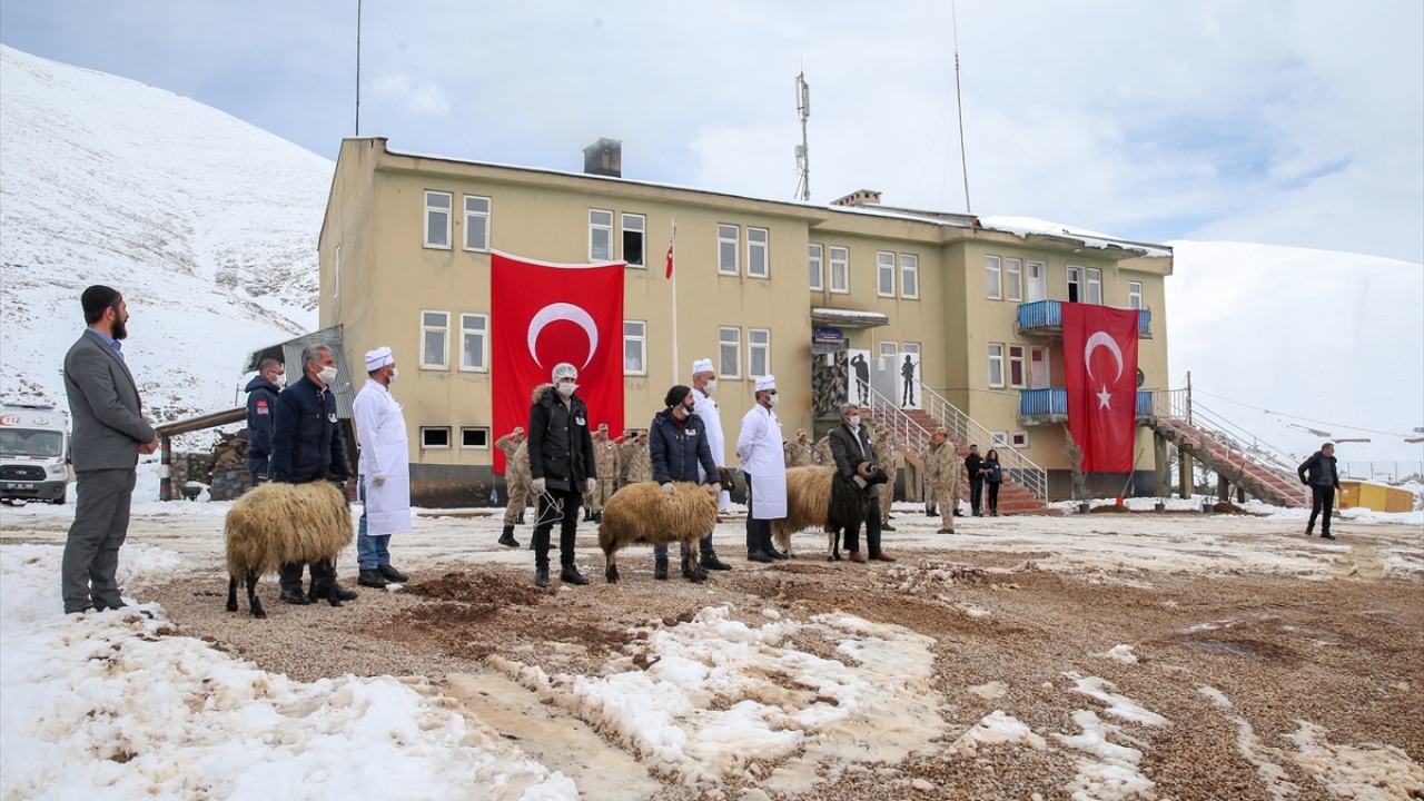 Şehitler için kurbanların kesildiği programda Tuğgeneral Yiğit ve komutanlar, acılı ailelere Kuran-ı Kerim ve Türk bayrağı hediye etti.