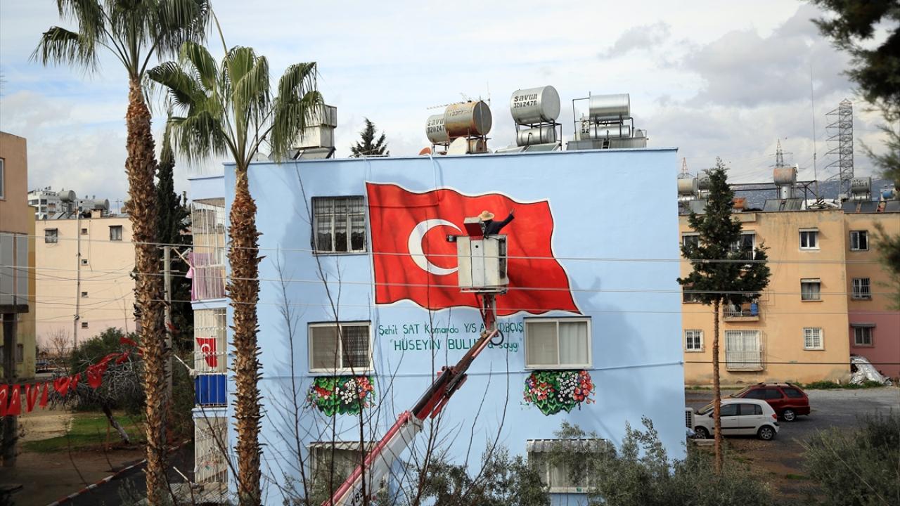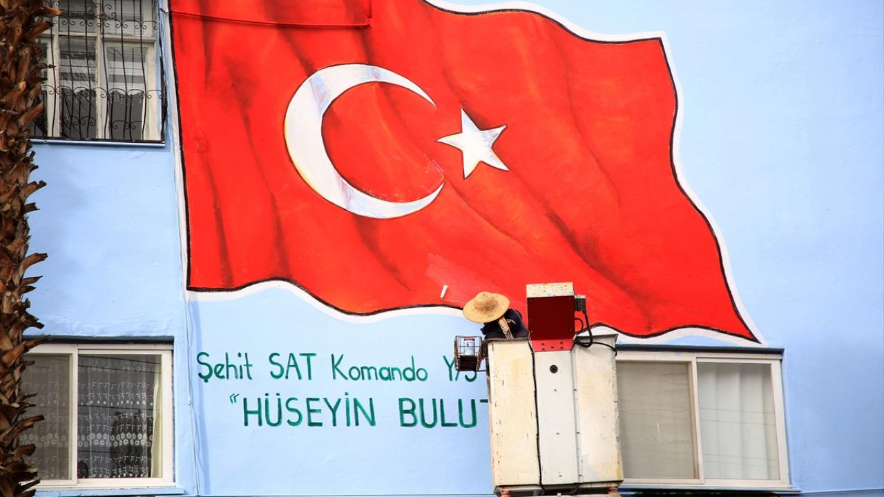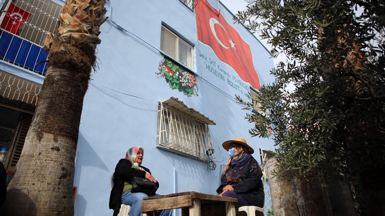 Mersin'de, Toroslar Belediyesince evlerinin dış cephesine Türk bayrağı resmedilen şehit aileleri, anlamlı çalışmadan duydukları memnuniyeti dile getirdi.