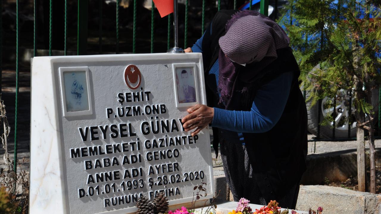 Oğlunun kabrini elleriyle yıkayıp temizleyen ve gözyaşlarına hakim olamayan anne Ayfer Günay, "Oğlumuzun şehadetinin birinci yıl dönümü. Koronavirüs tedbirleri nedeniyle dışarı çıkma kısıtlaması olduğu için oğlumuzun mezarına gelemiyorduk. Durumu jandarmaya ilettik ve onların eşliğinde buraya geldik" dedi.
