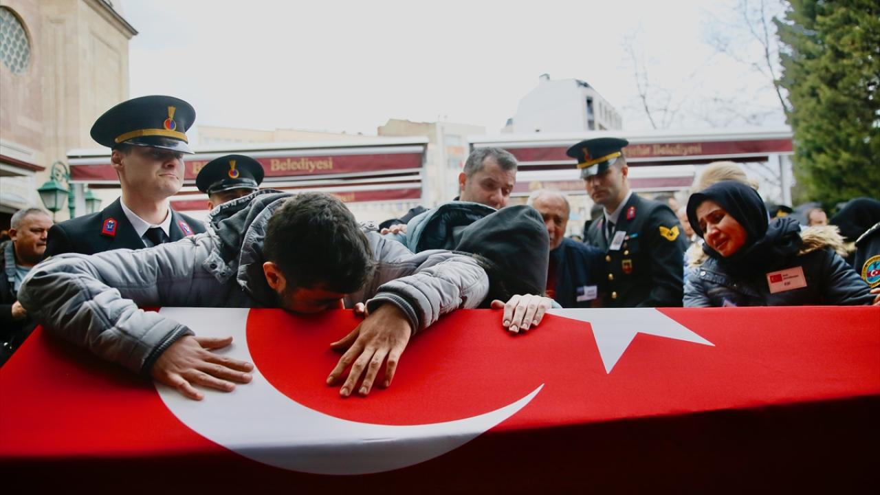 Adalıoğlu`nun Türk bayrağına sarılı tabutu, askerler tarafından omuzlarda taşınarak Reşadiye Camisi`ne getirildi.