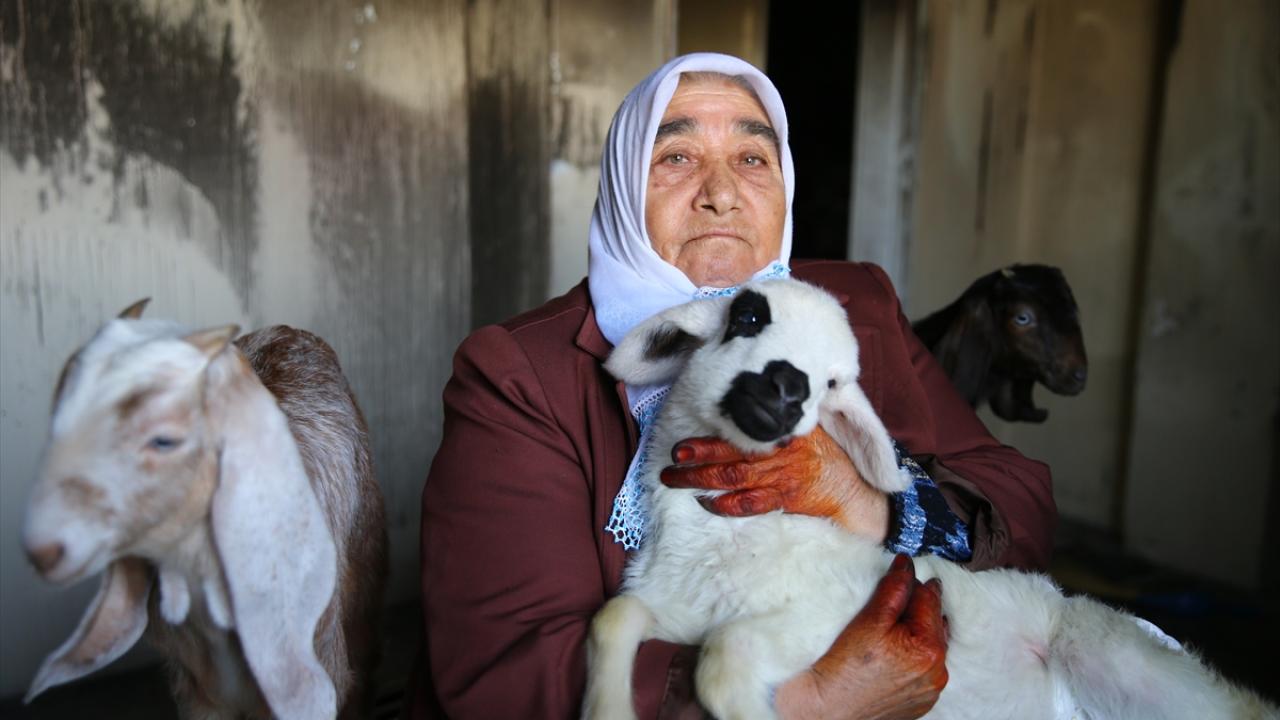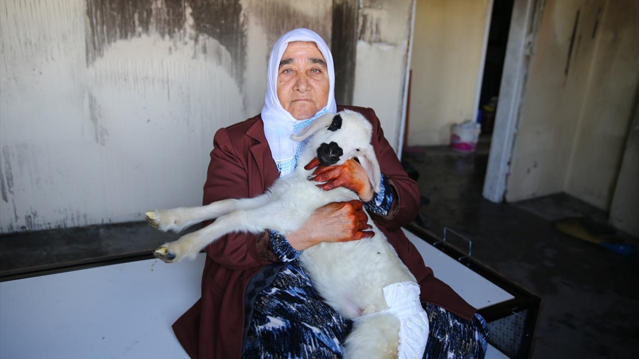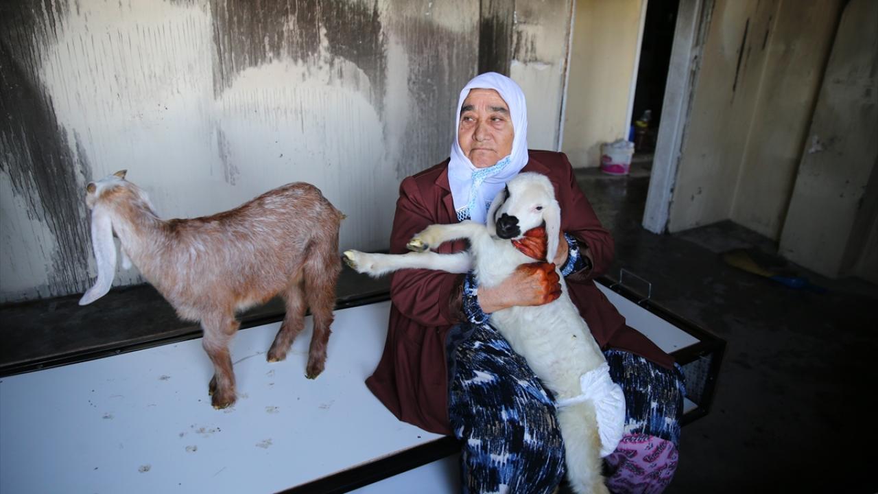 Adana'nın merkez Yüreğir ilçesinde evinde yangın çıkan 75 yaşındaki şehit annesi Fatma Hakan, biberonla beslediği 2 oğlak ve kuzusunun itfaiye ekipleri tarafından kurtarılmasıyla buruk sevinç yaşadı.