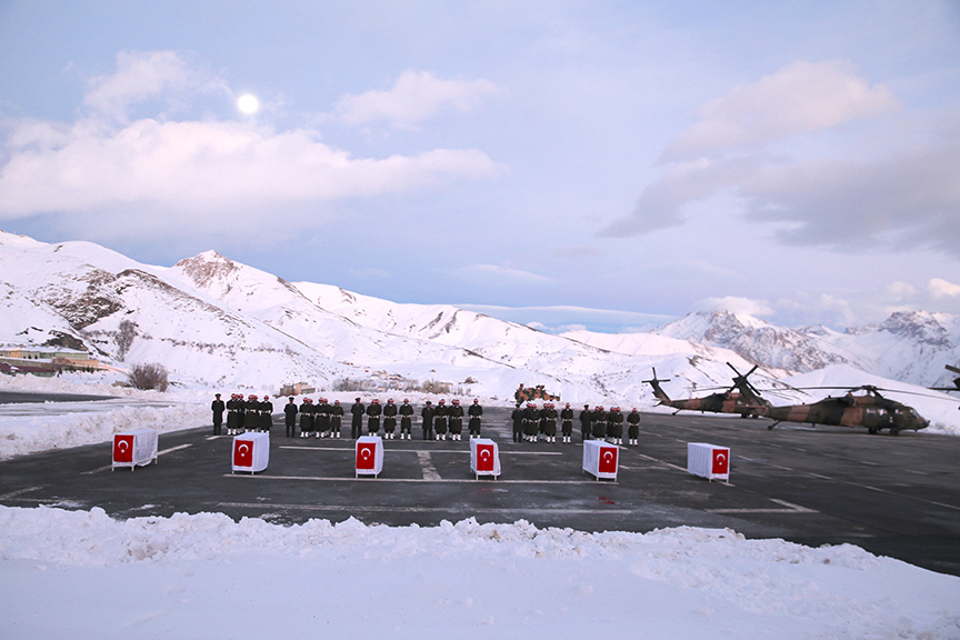 Irak'ın kuzeyinde bölücü terör örgütü tarafından düzenlenen saldırıda şehit olan askerlerin cenazeleri Hakkari Dağ ve Komando Tugay Komutanlığı’nda düzenlenen tören sonrası memleketlerine gönderildi.
