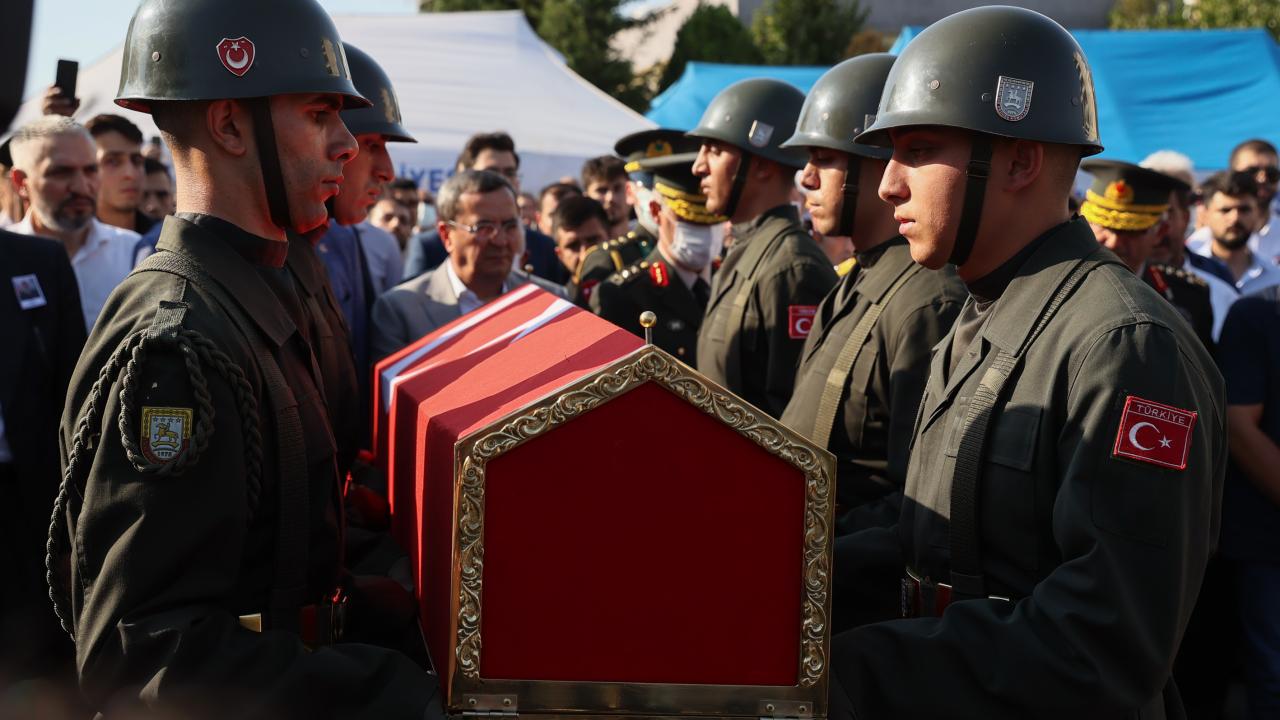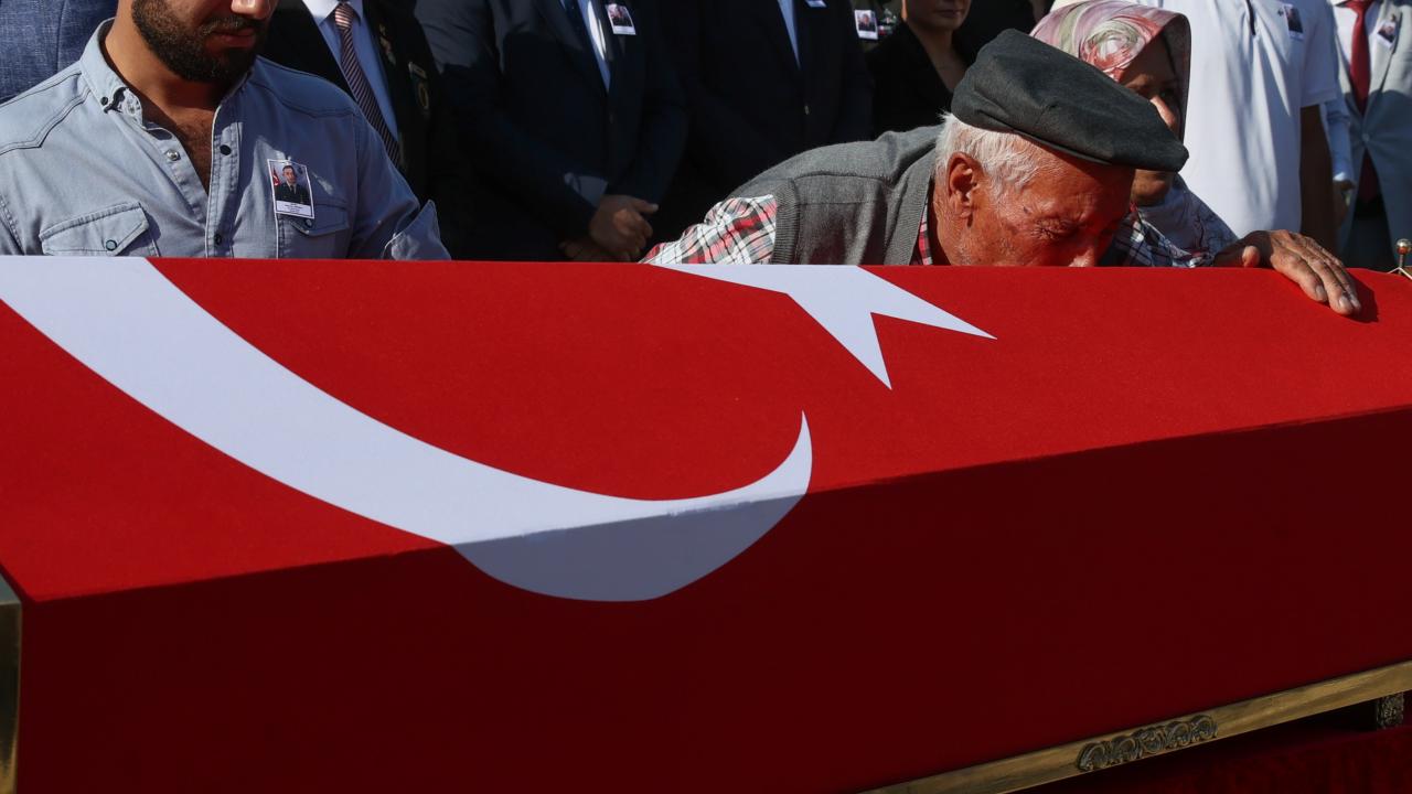 Burada şehidin yakınları Türk bayrağına sarılı tabuta sarılıp gözyaşı döktü. Din görevlisi, kısa bir konuşma yaptıktan sonra törene katılanlardan helallik istedi.