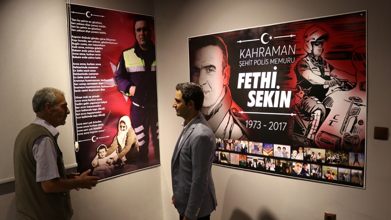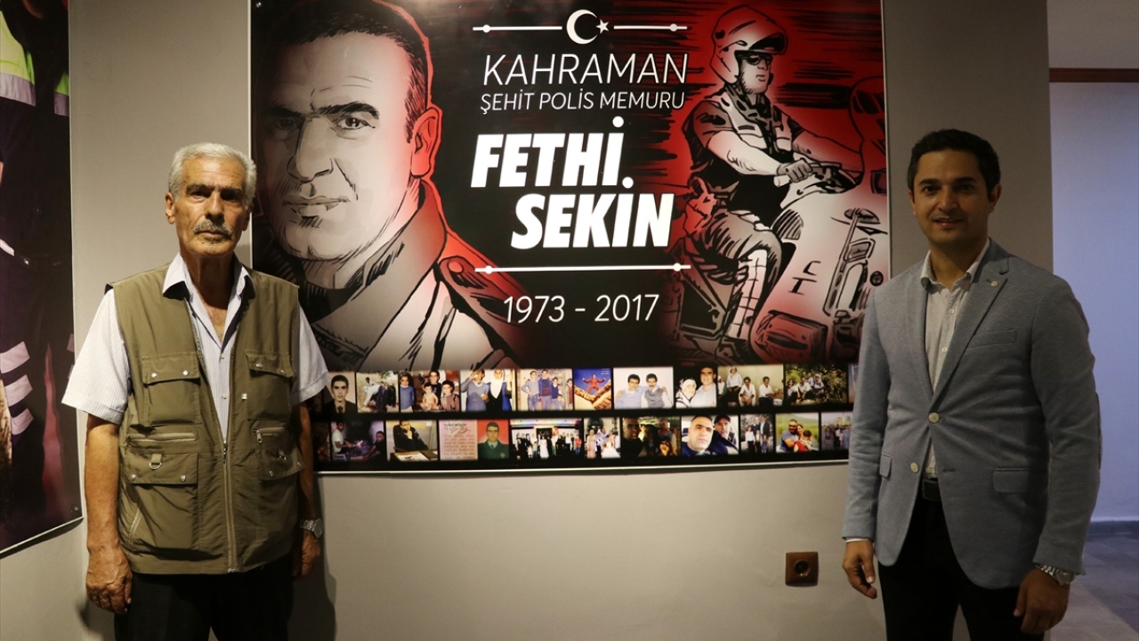 İzmir Adliyesi önünde, 3 yıl önceki terör saldırısında kahramanlığıyla çok sayıda insanın hayatını kurtaran şehit polis memuru Fethi Sekin için, memleketi Elazığ'ın Baskil ilçesinde Kaymakamlık tarafından kurulan, hatıralarının yaşatıldığı müzeye babası Mehmet Zeki Sekin'in gerçekleştirdiği ilk ziyarette duygulu anlar yaşandı.