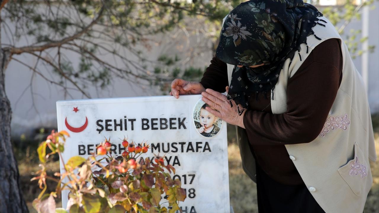 "Yavrumun yavrusu, küçük meleğim" diyerek torunu Bedirhan`ın mezarındaki fotoğrafa bakıp dua eden Demir, kızı ve torununu özlemle anıyor.