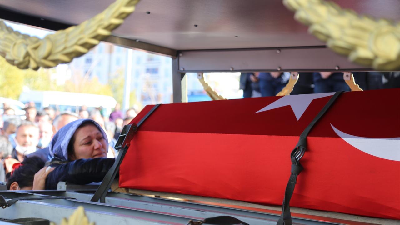 Bakan Soylu, tabuta sarılı Türk bayrağını öperek şehidin eşine verdi