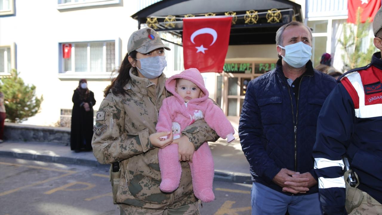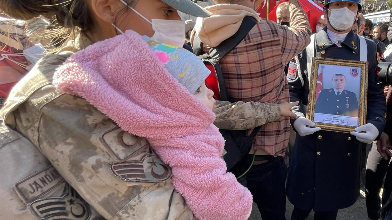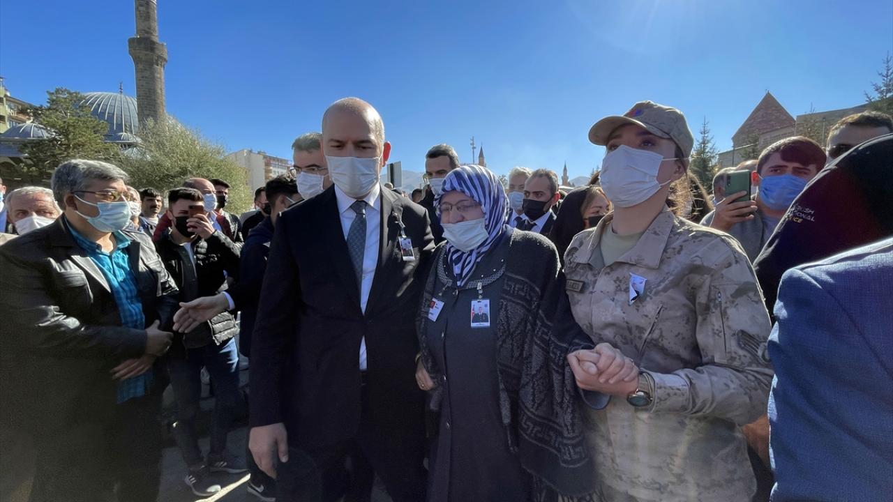 Uzman Çavuş Burak Tortumlu`nun annesi Erengül Tortumlu ve bazı yakınları, Narmanlı Camisi`ndeki törenden sonra Bakan Soylu`nun da bulunduğu VIP minibüs ile Karagöbek Mahallesi`ne geldi.
