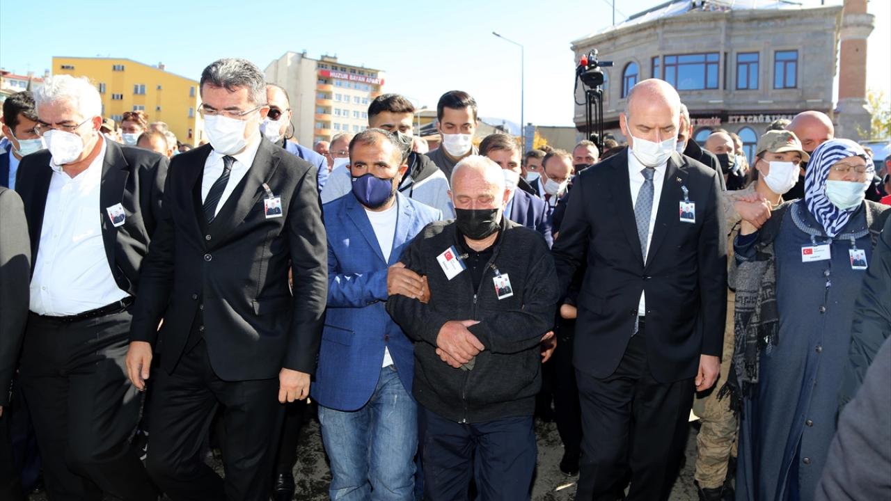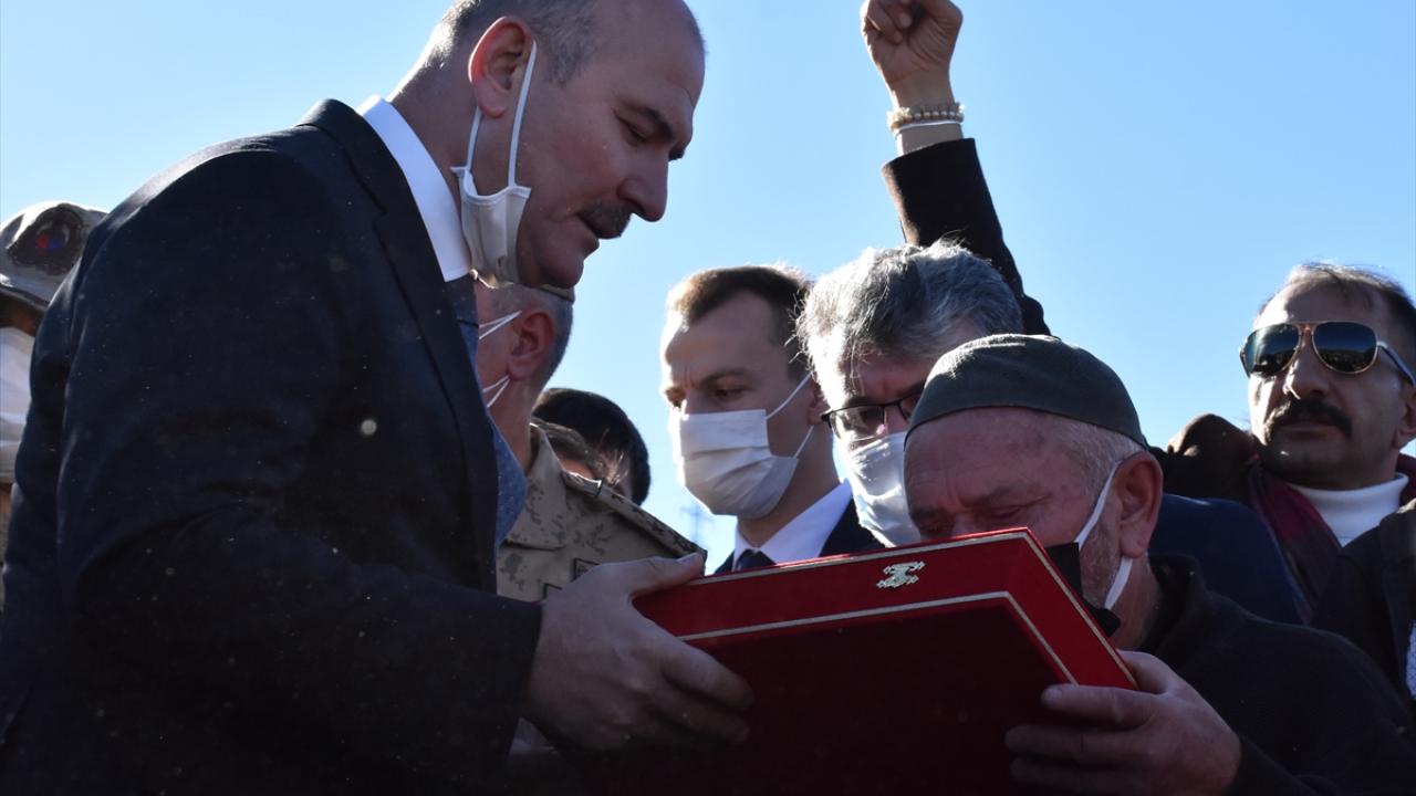 Törende Bakan Soylu, şehidin babası Süleyman Tortumlu ve yakınlarına sarılıp taziyelerini iletti.