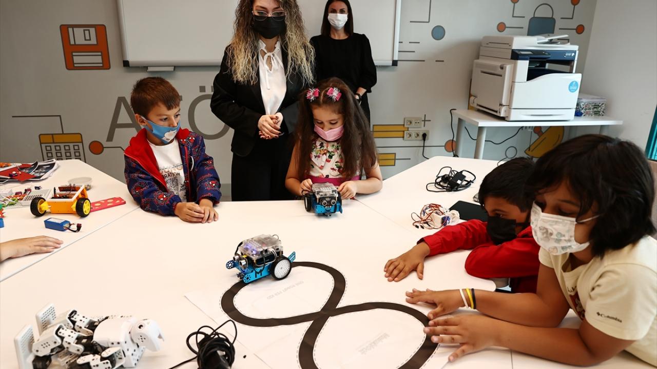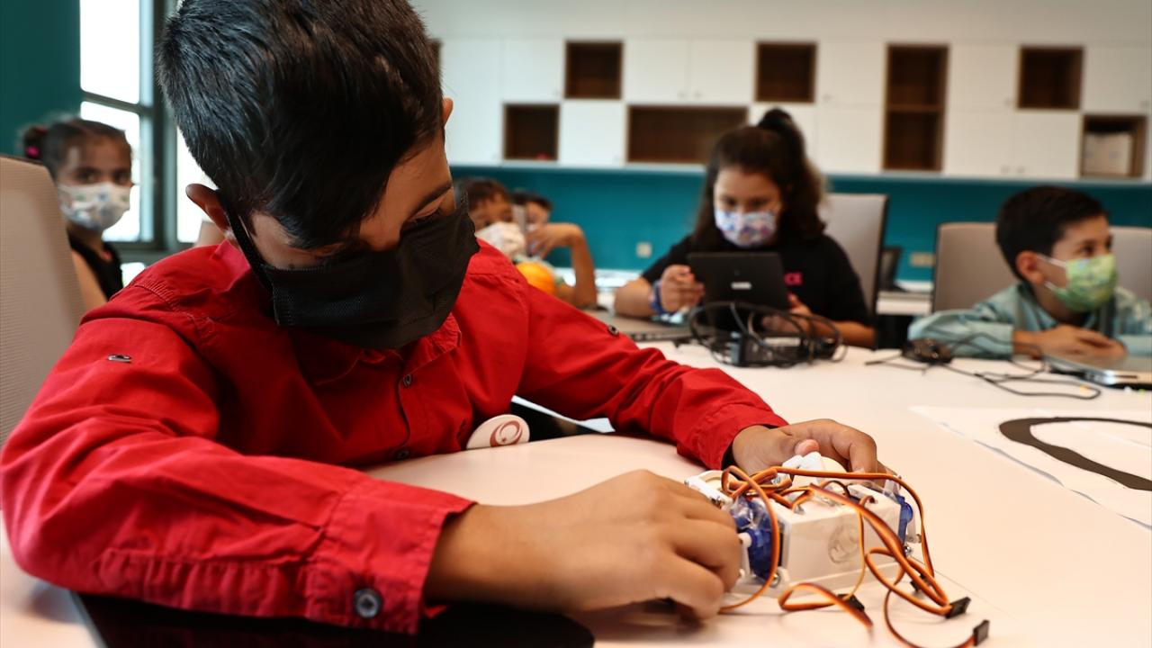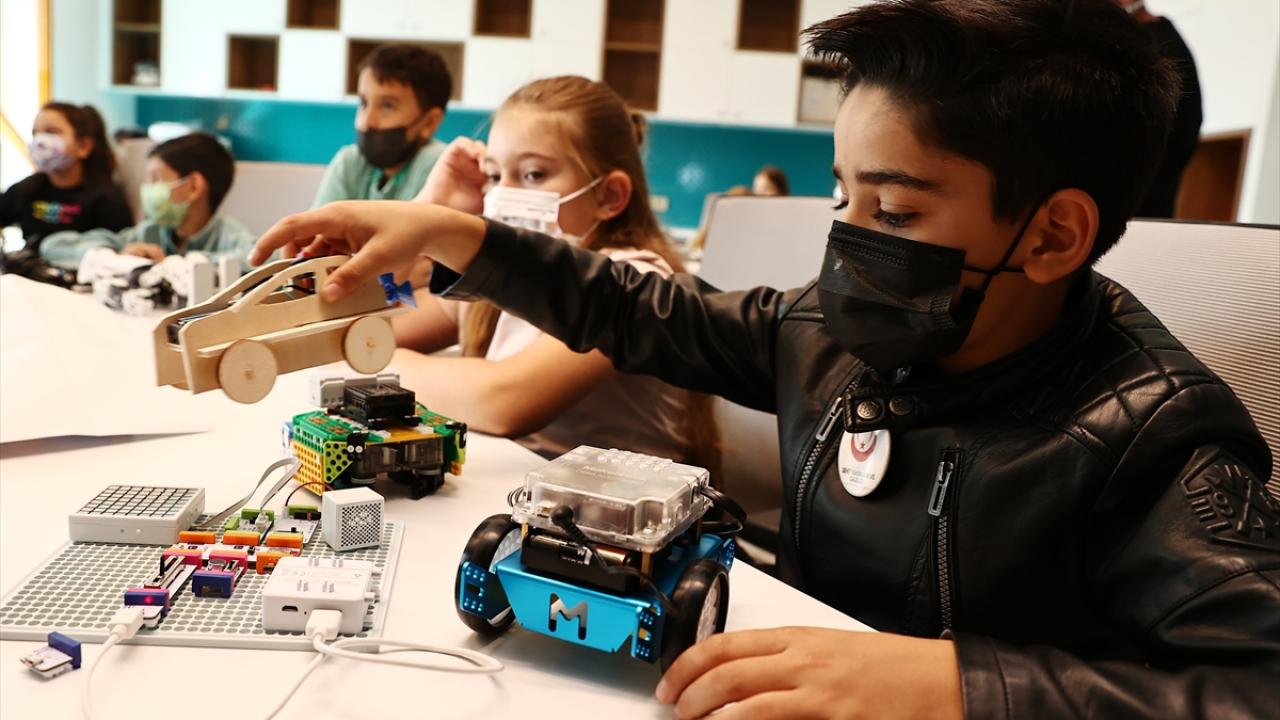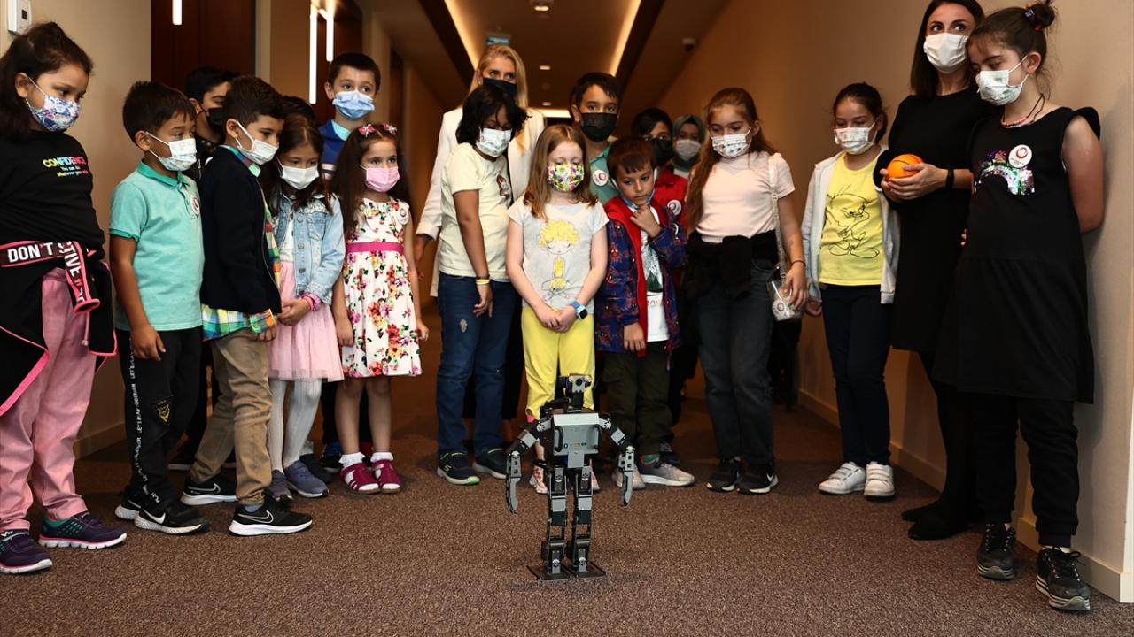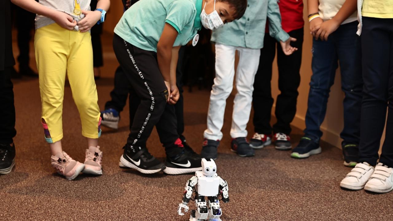 Bazı çocuklar ebru çalışması ve kitap ayracı süslemesi yaparken, küçük yaştaki şehit çocuklarının ilgisini ise teknoloji atölyesindeki robotlar çekti. Çocuklar, "Robotis OP3" adlı robotun topla yaptığı gösteriyi beğeniyle izledi.