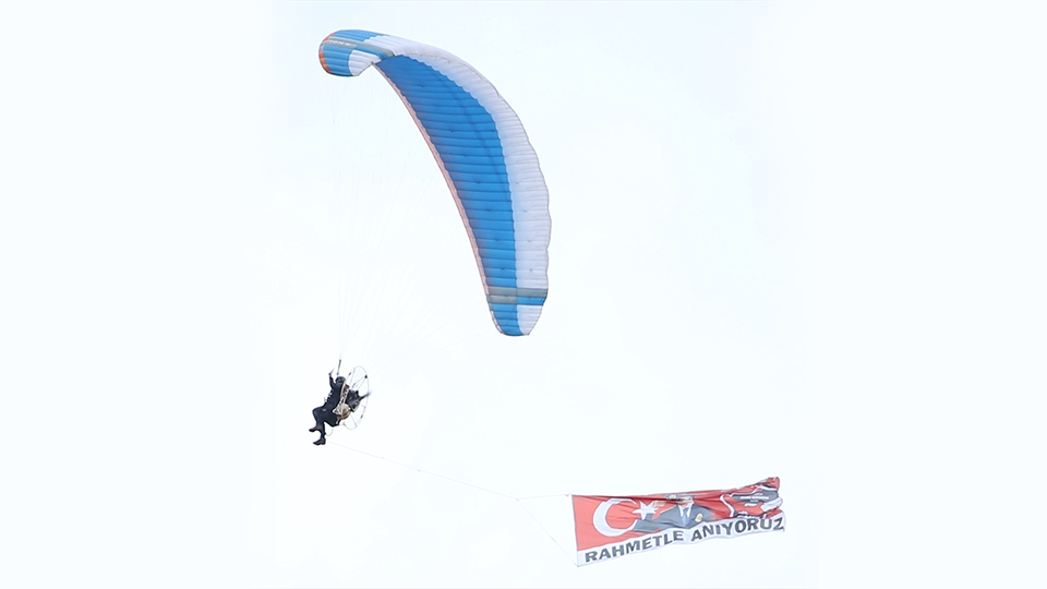 Program sırasında Sakarya Arama Kurtarma Ekibinde (SAKE) görevli bir paramotor pilotu, üzerinde Okkan`ın resmi bulunan "Rahmetle Anıyoruz" yazılı pankartla uçuş gerçekleştirdi.