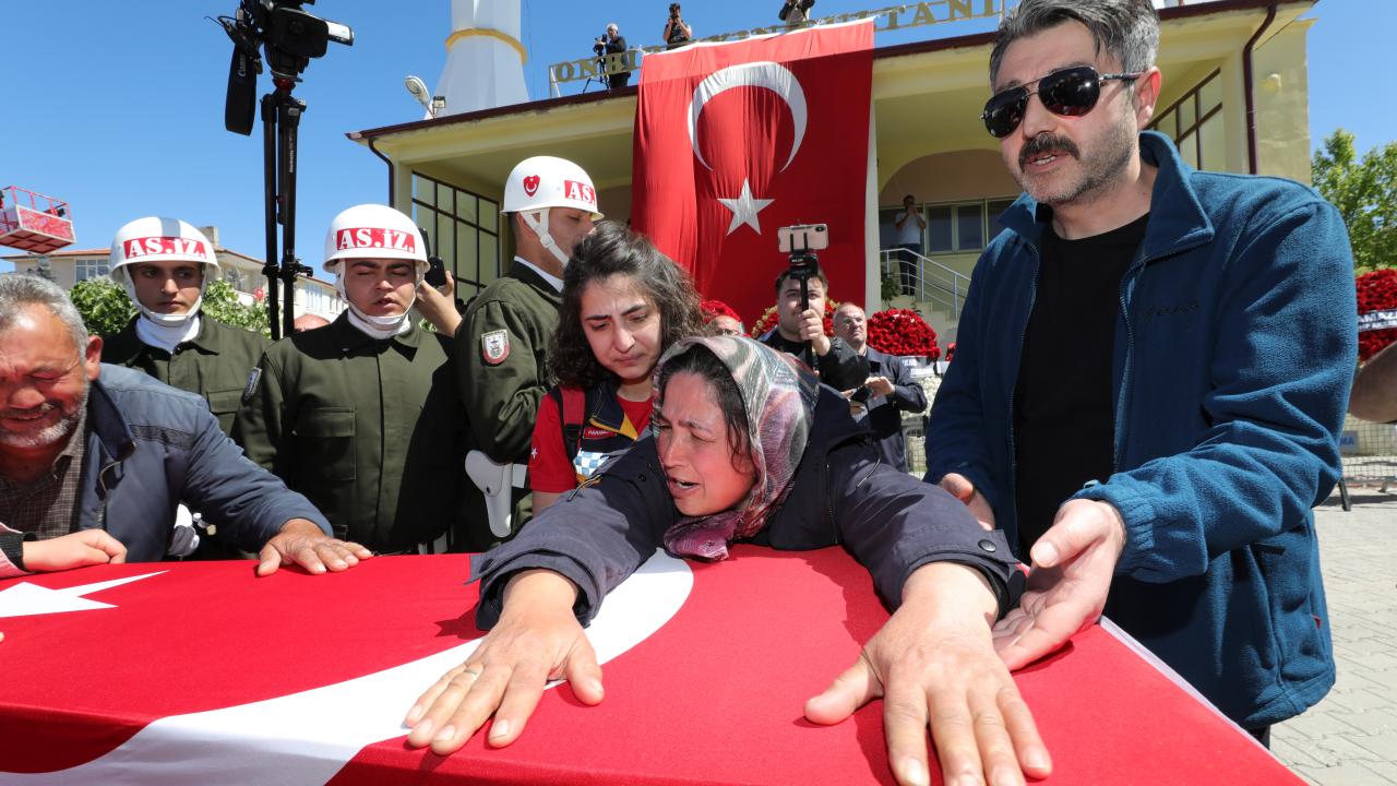 Burada şehidin yakınları, Türk bayrağına sarılı tabuta sarılarak gözyaşı döktü.
